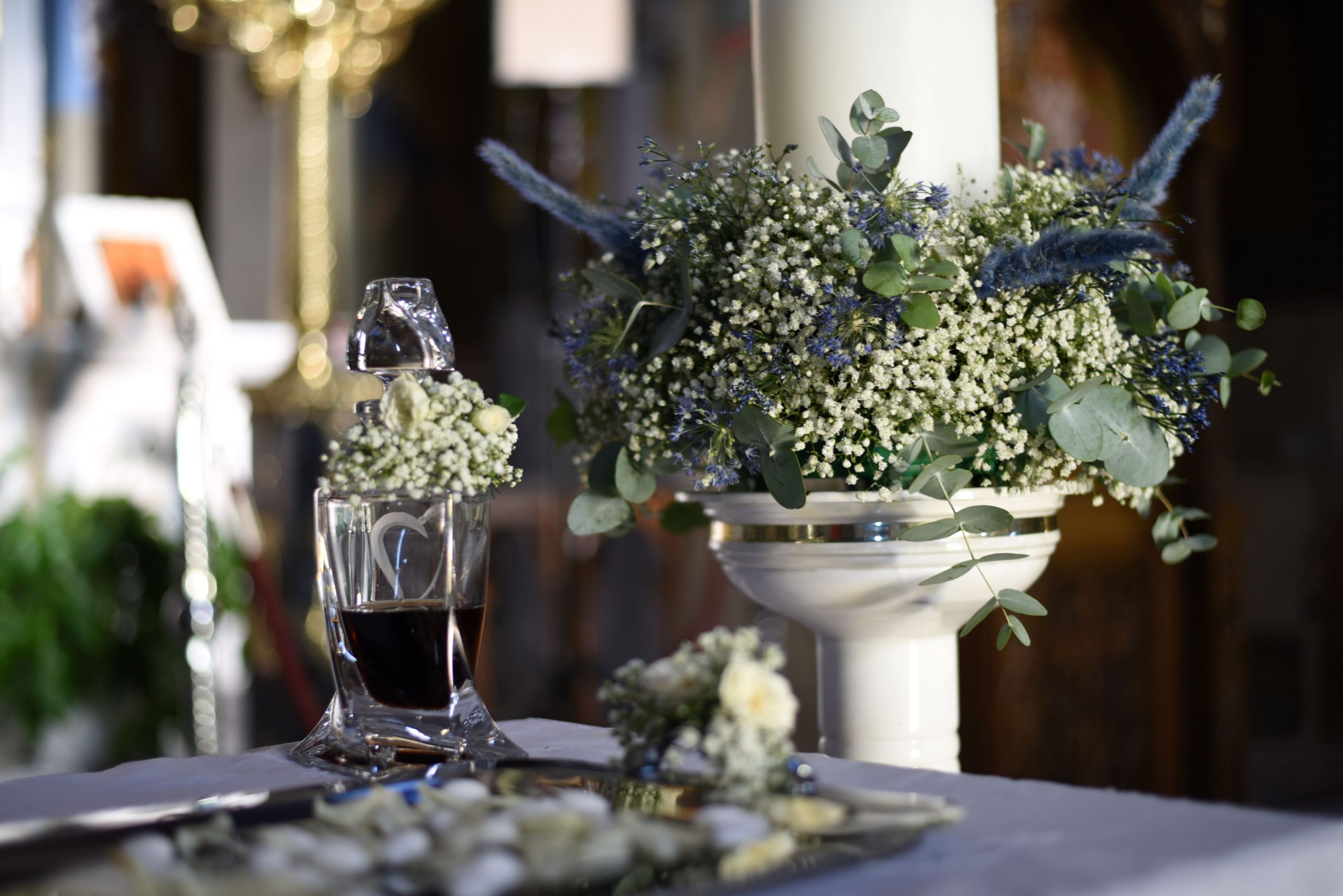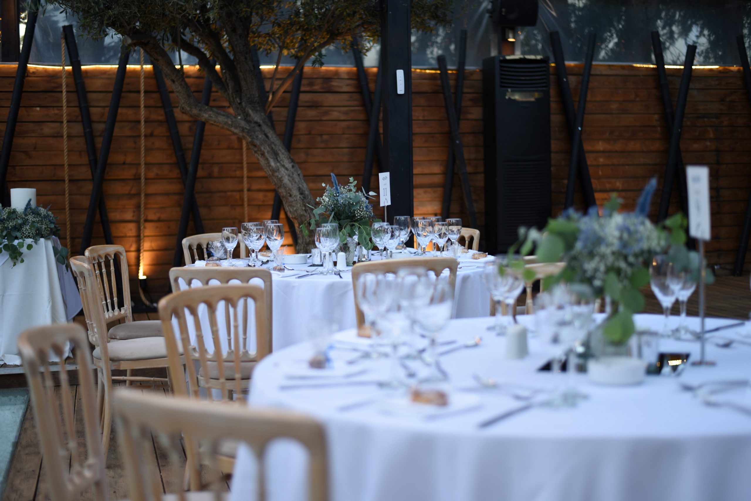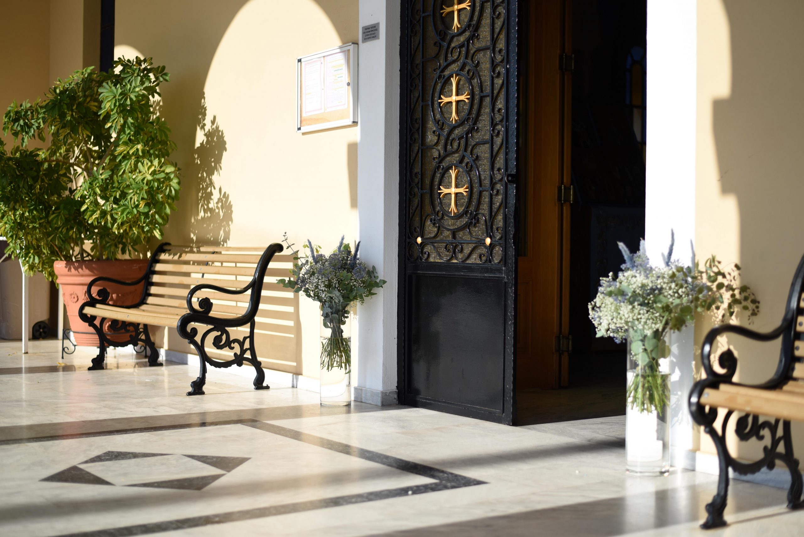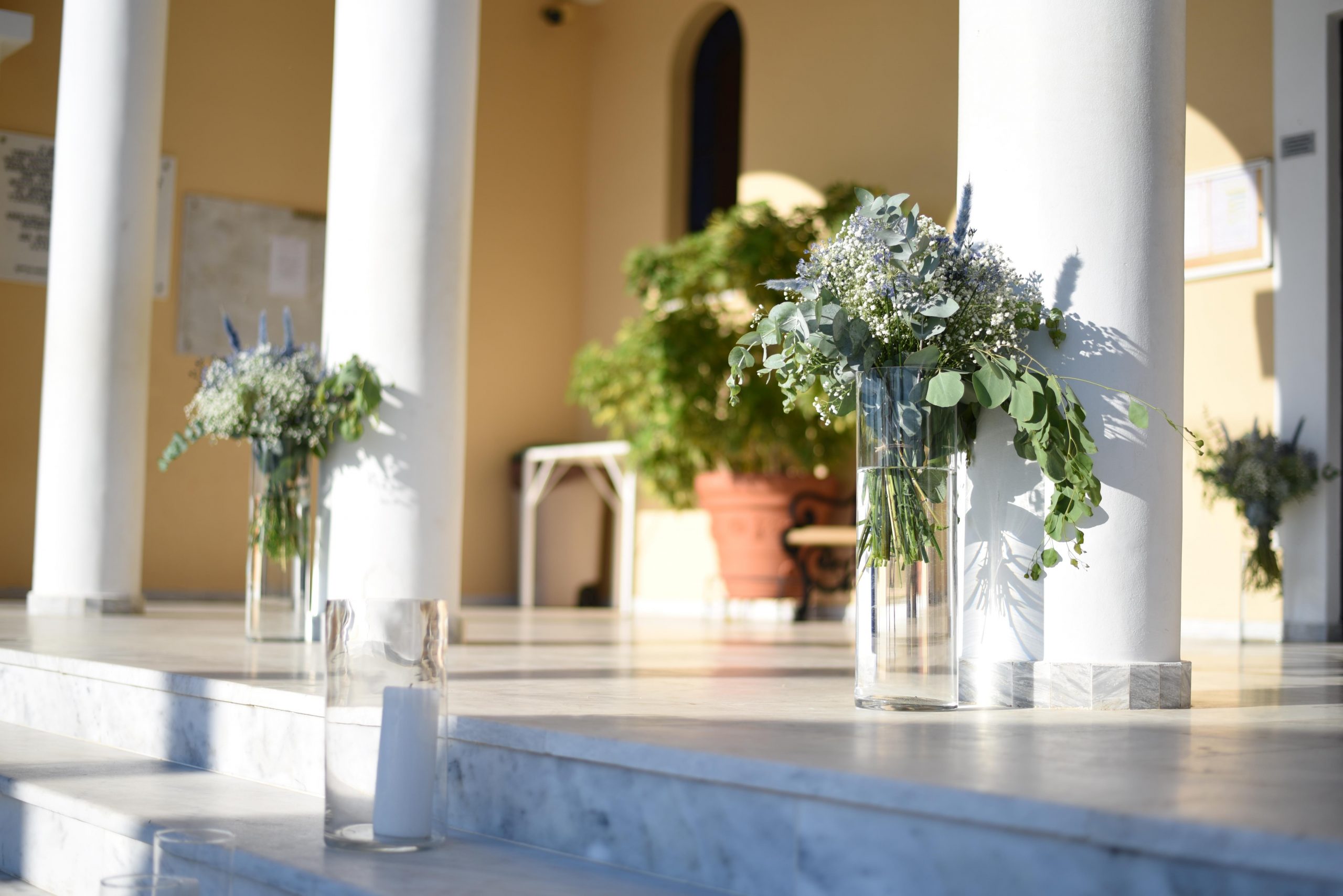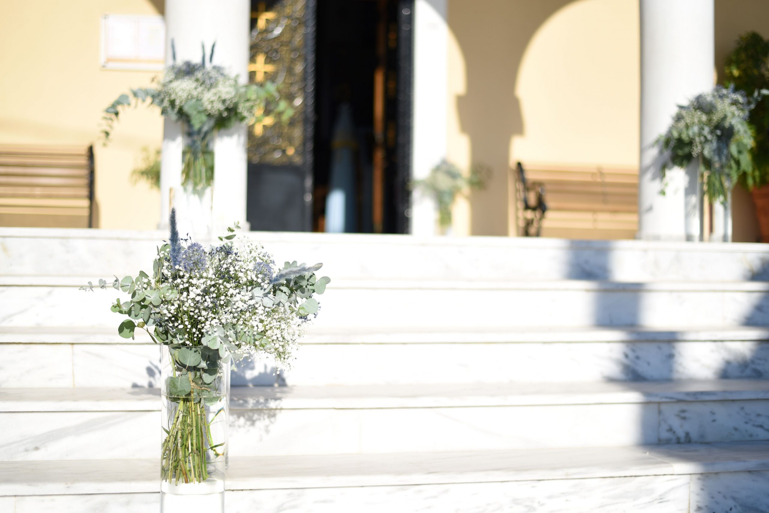 The wedding of Aphrodite and Dimitris moved in a palette of natural elegance, with an emphasis on white, soft blue and earthy green shades.