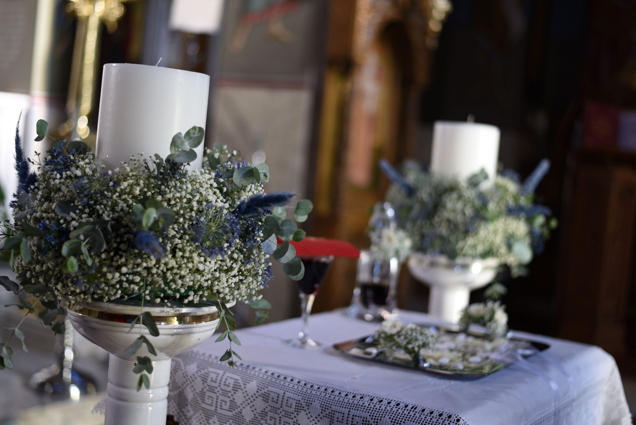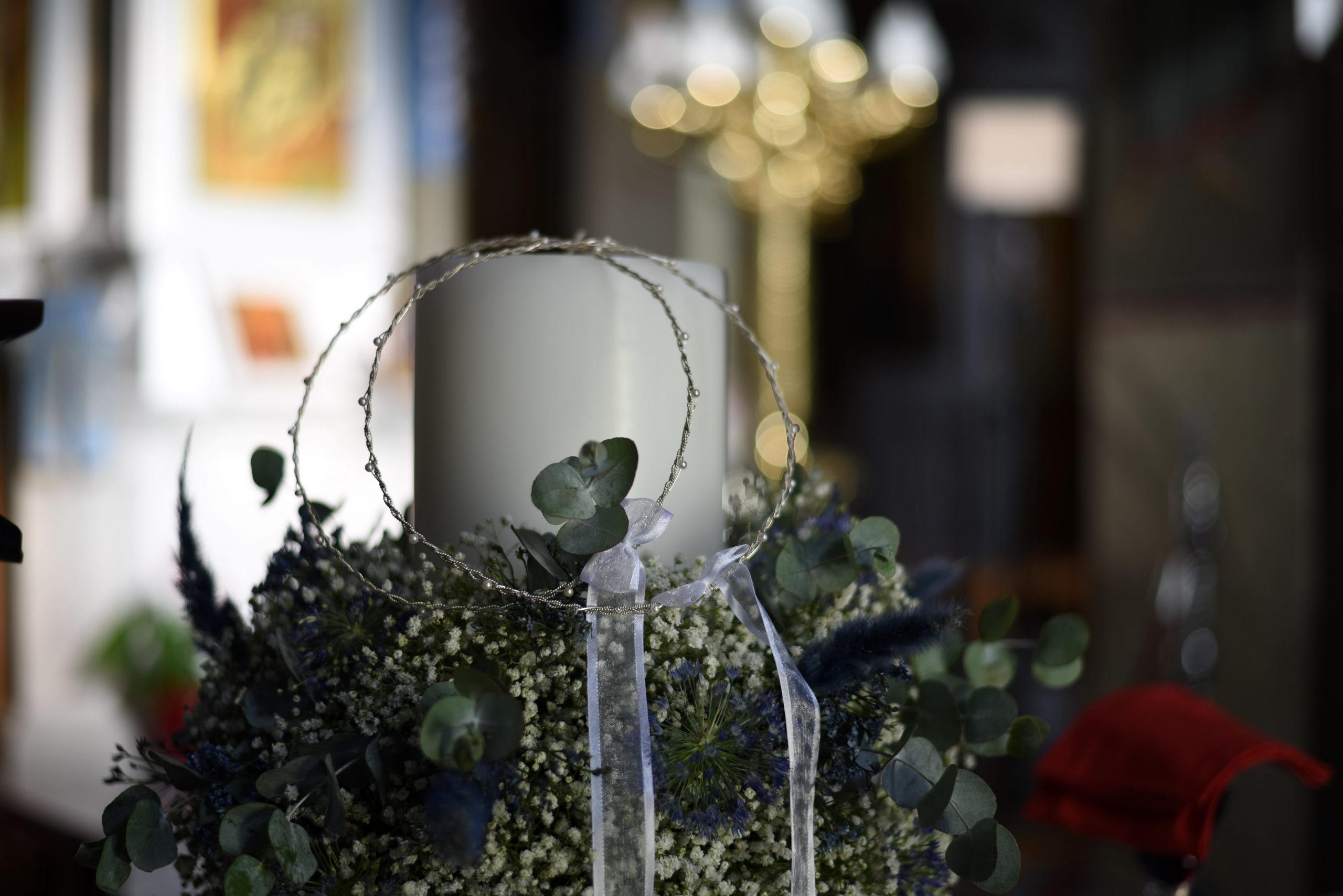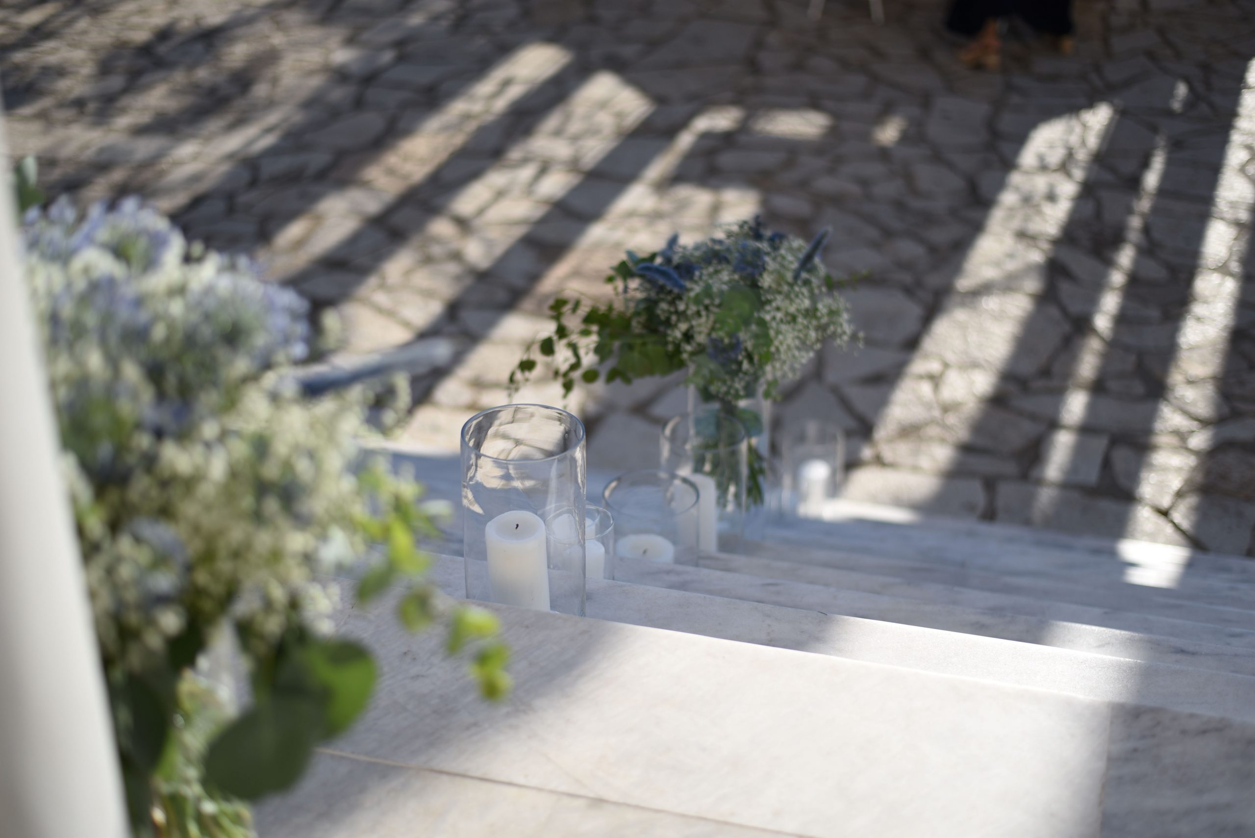 The candles made an elegant statement in the ceremonial part of the day, harmoniously tying in with the overall floral design. The arrangements placed outside the church in combination with the candles created a beautiful image. The favors, simple and neat, with soft textures and natural elements, completed the concept with discretion and finesse.