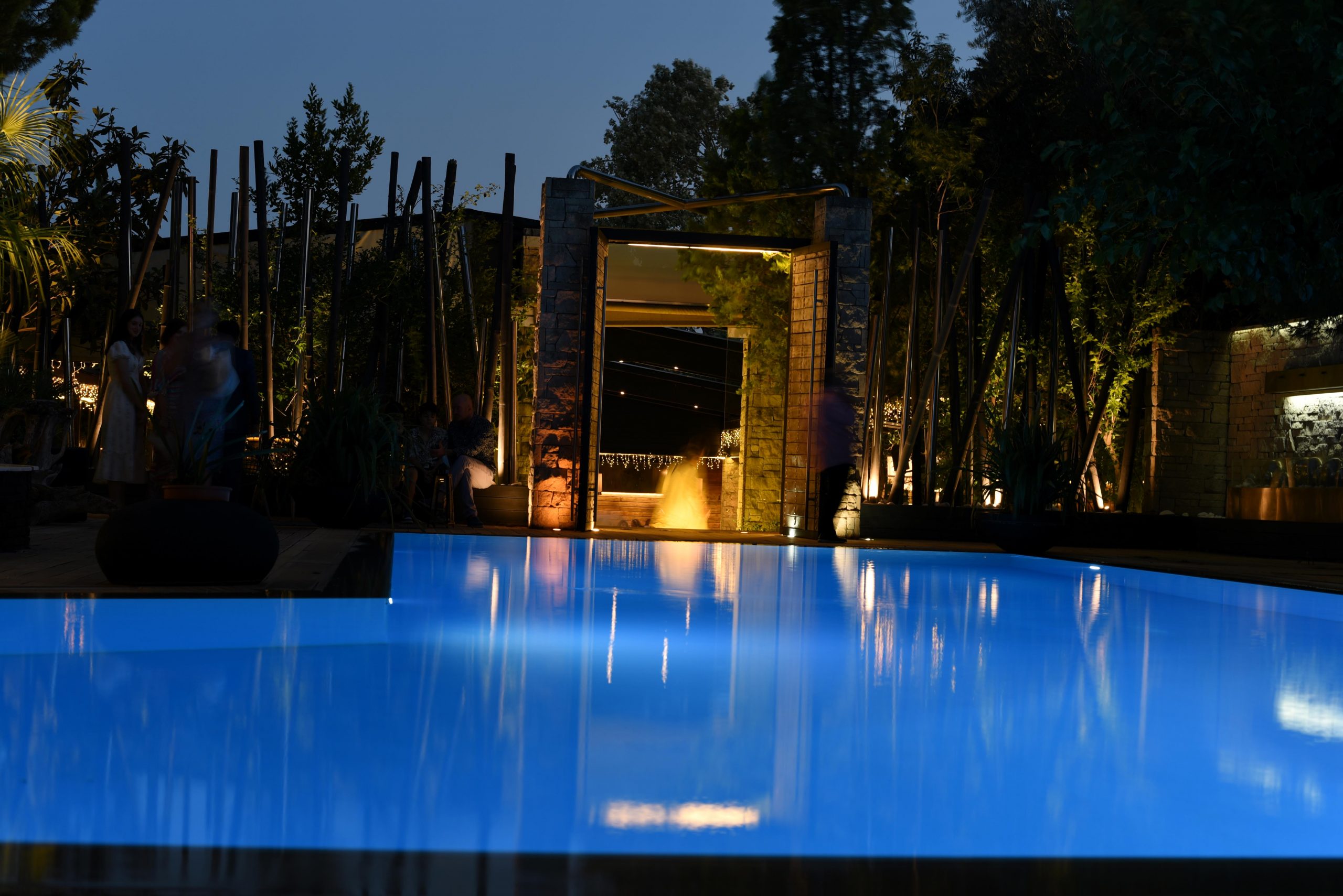 At the Michelina Estate where the wedding reception took place, the tables were set with white tablecloths, while glass mirrors, glass jars and low candles added light and depth to the composition. Each centerpiece was designed to let the space "breathe", maintaining the balance between elegant and natural. In the outdoor area of the estate next to the pool, the dessert table with traditional sweets was set up.