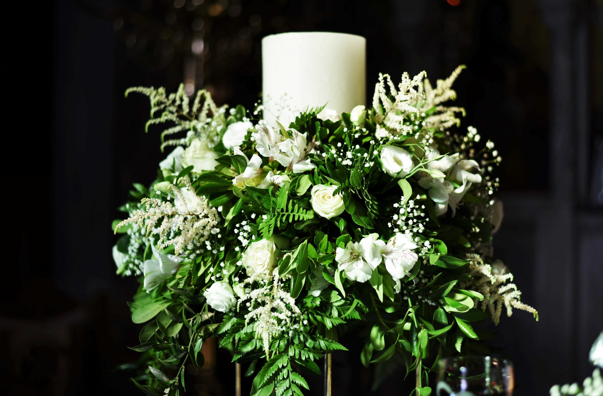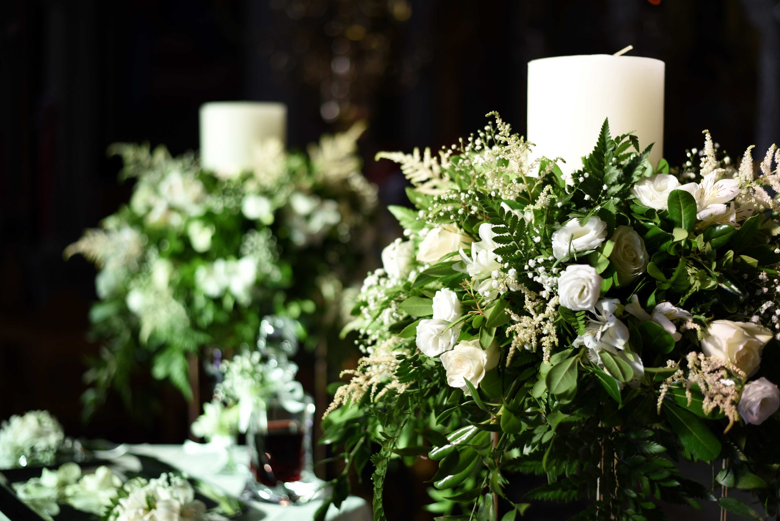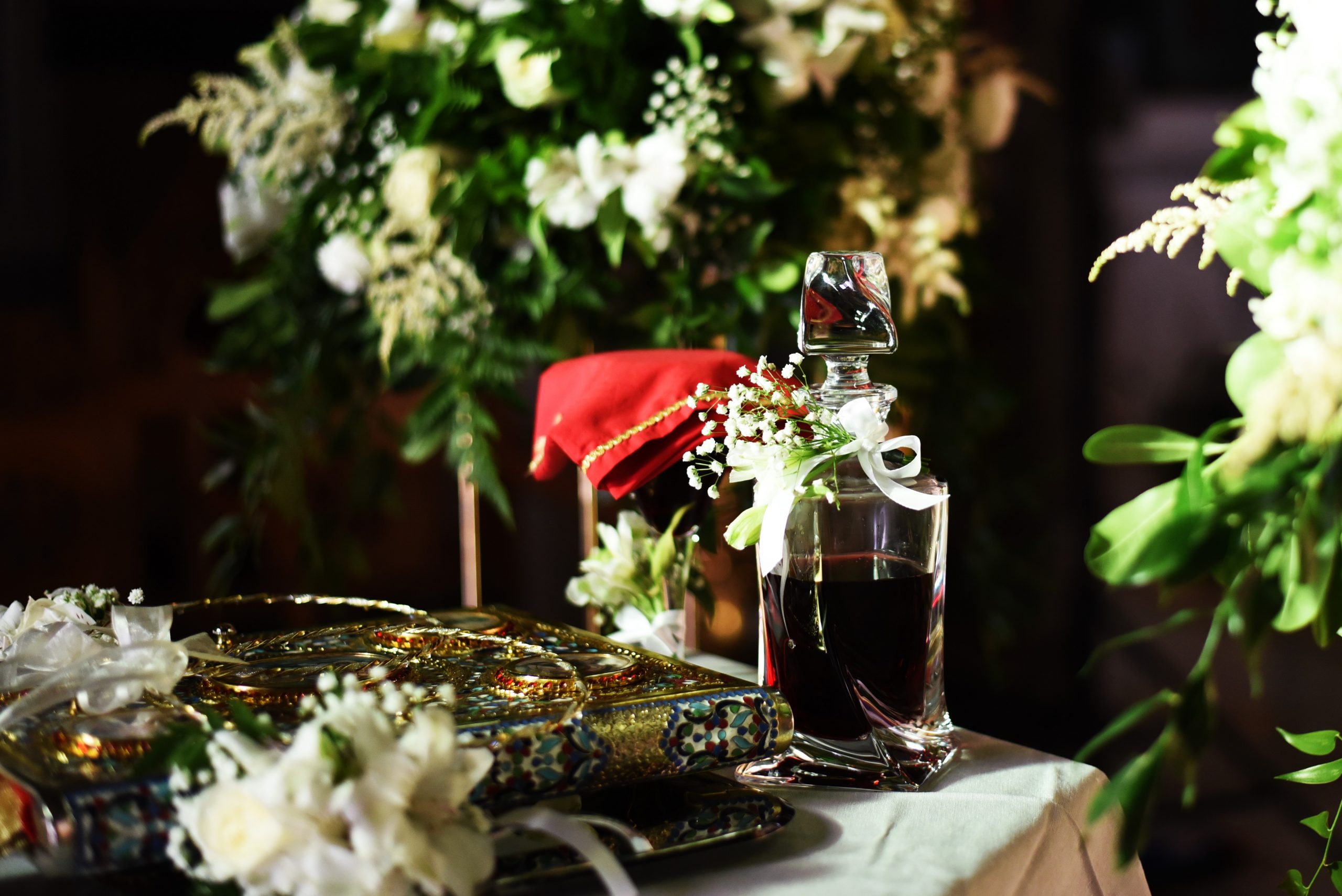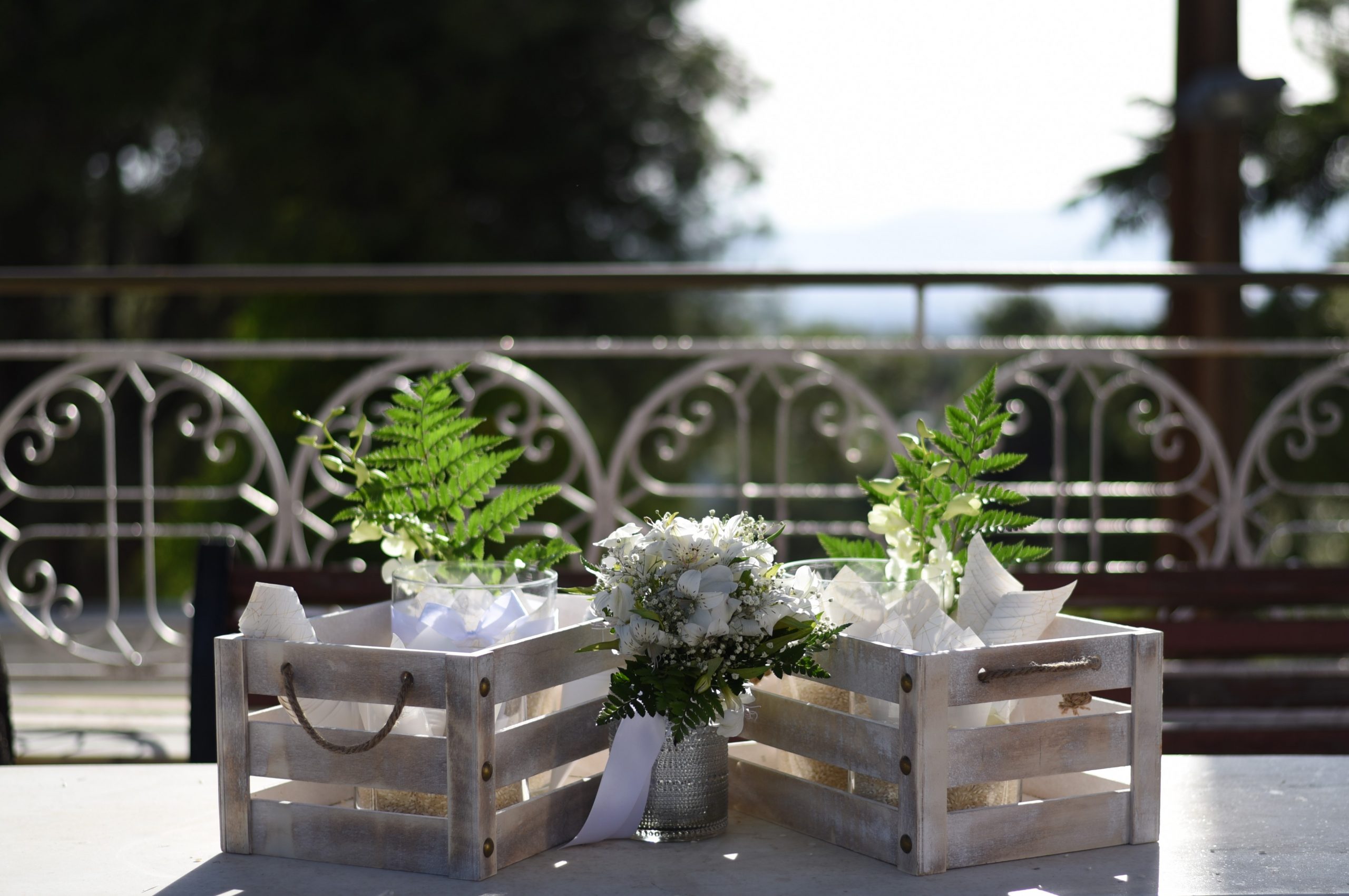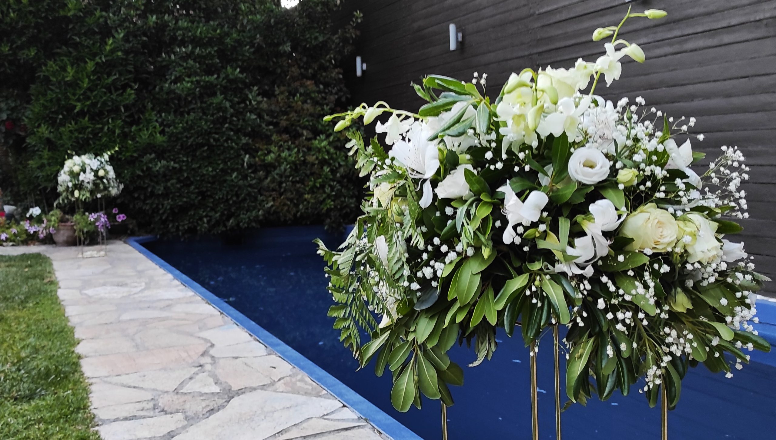 The wedding of Dora and Alexandros took place at Panagia Eleftherotria in Kifissia. The decoration moved in a palette of white flowers and green leaves, exuding tranquility, freshness and timeless elegance. At the entrances and on the steps of the church, rich compositions of white roses, alstroemerias and gypsophila were framed by lush eucalyptus and Italian rouscous leaves, creating a natural flow that led discreetly towards the interior. The compositions were placed on metal bases, giving height and a stately presence, while the overall image remained light and airy — a harmonious balance between simplicity and luxury.