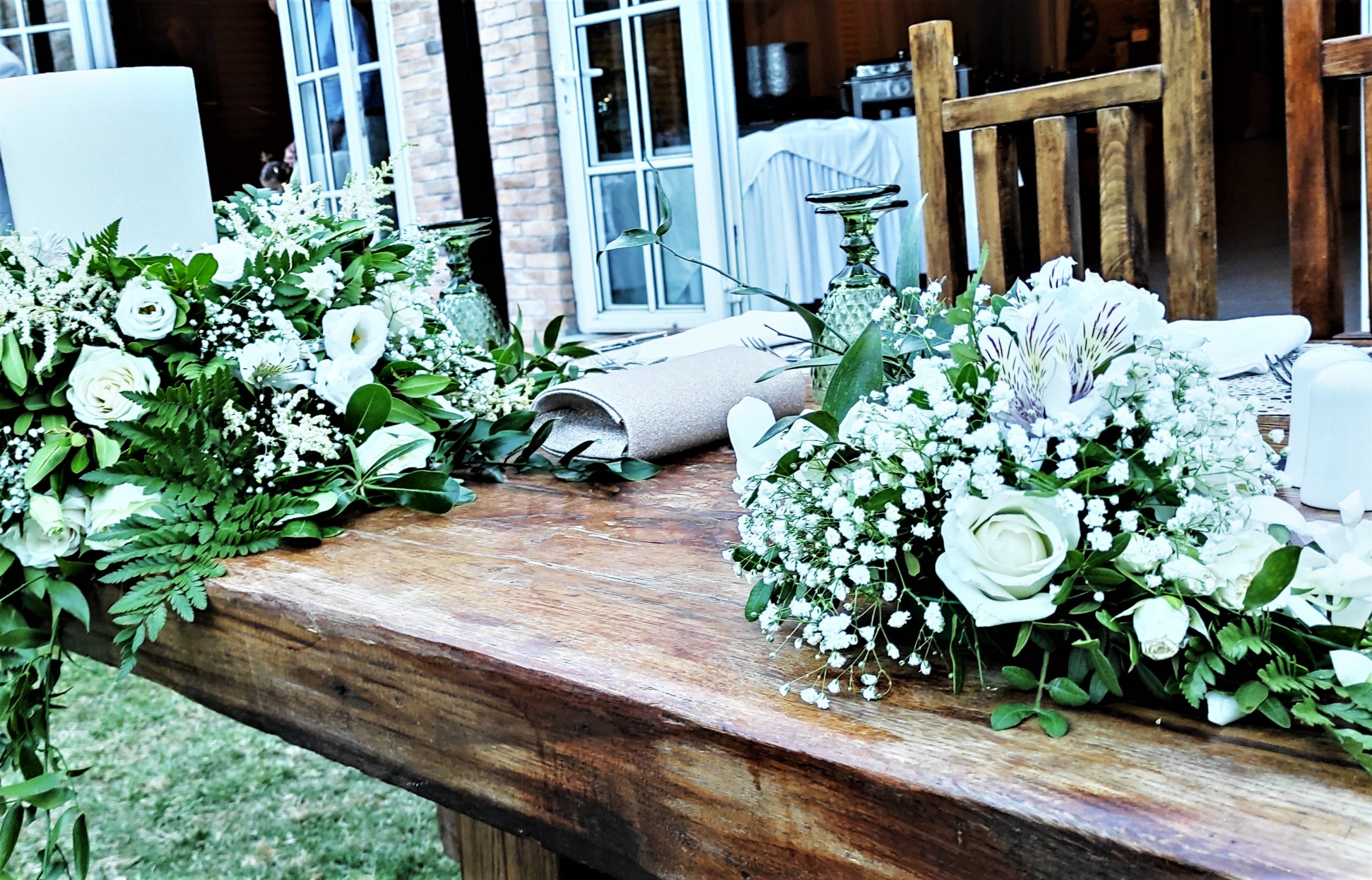 In the reception area at the Jockey Club, the decoration continued the same philosophy of natural elegance. The earthy textures of the wooden elements were ideally combined with the white of the flowers, creating a welcoming, bright and perfectly balanced environment. Each composition functioned as a natural extension of the space, without exaggeration, letting the elegance speak for itself.