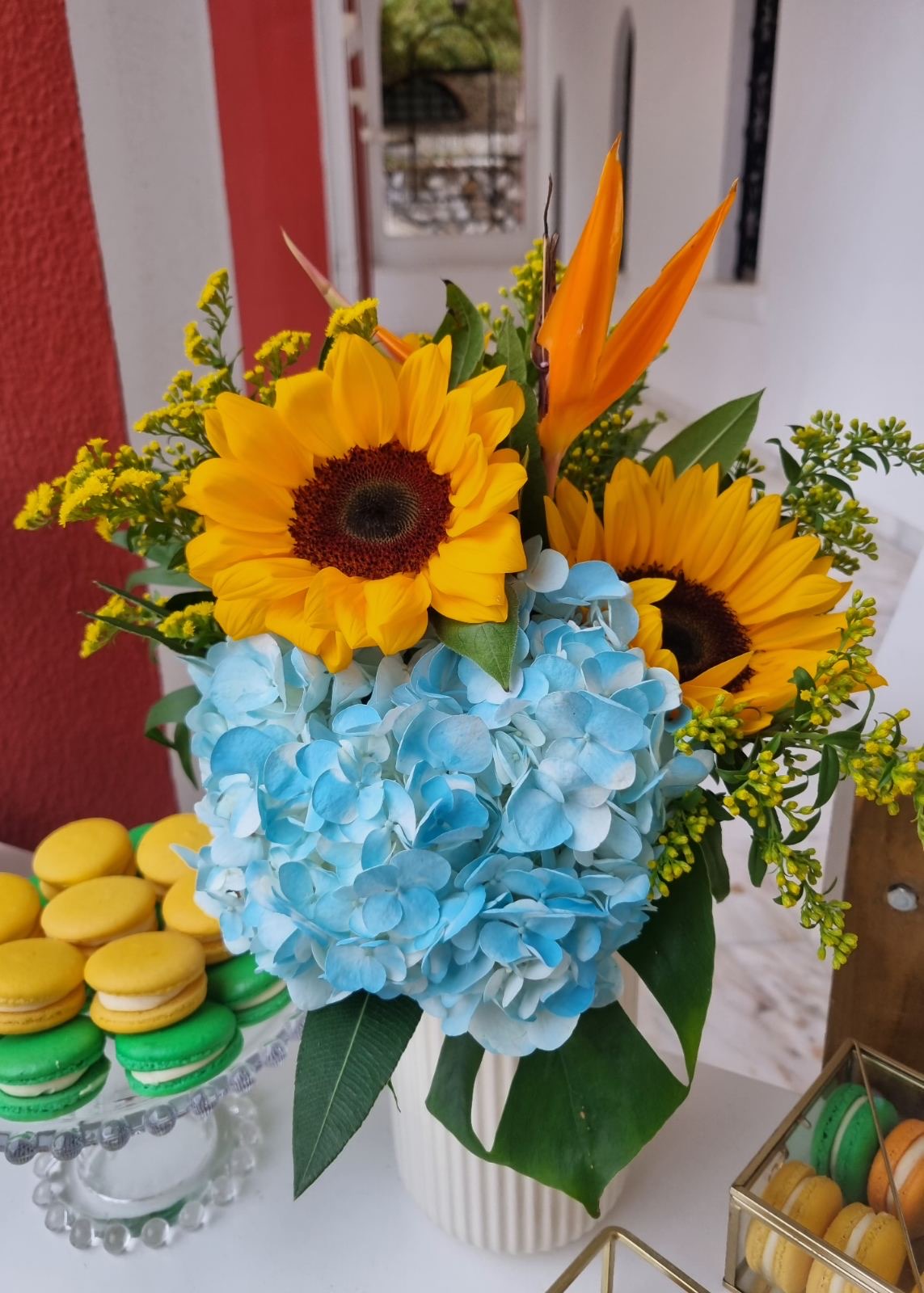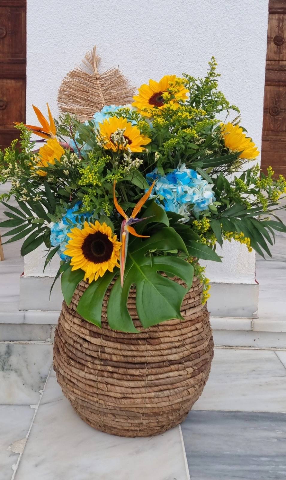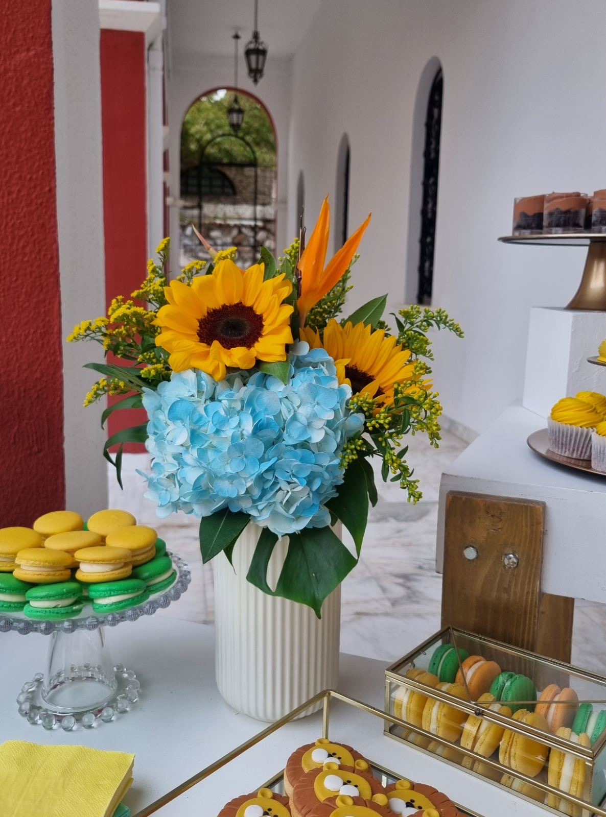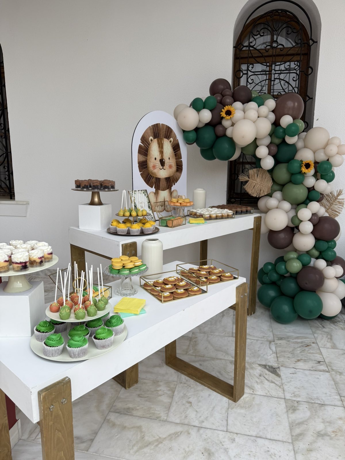 Το θέμα που επέλεξαν ήταν το Lion and friends!!! Εμείς προσαρμόσαμε την ιδέα τους στο “trend” επιλέγοντας συνθέσεις με σιελ ορτανσίες και ηλίανθους και πράσινα φυλλώματα, διατηρώντας μια αίσθηση tropical!!!