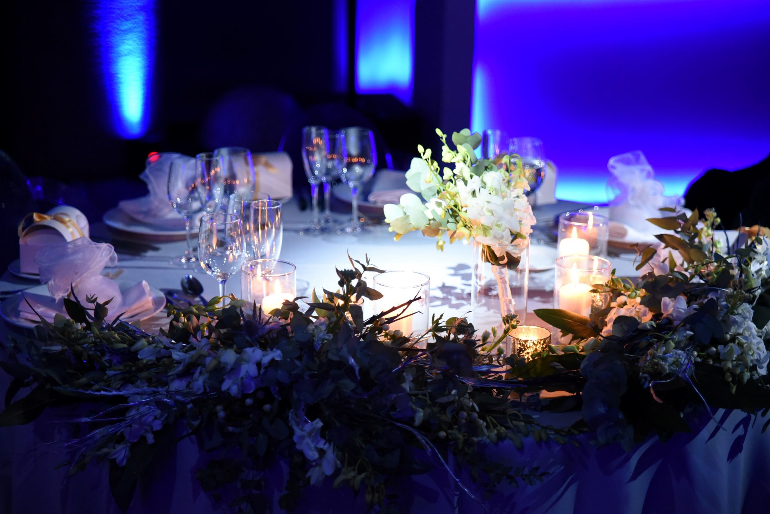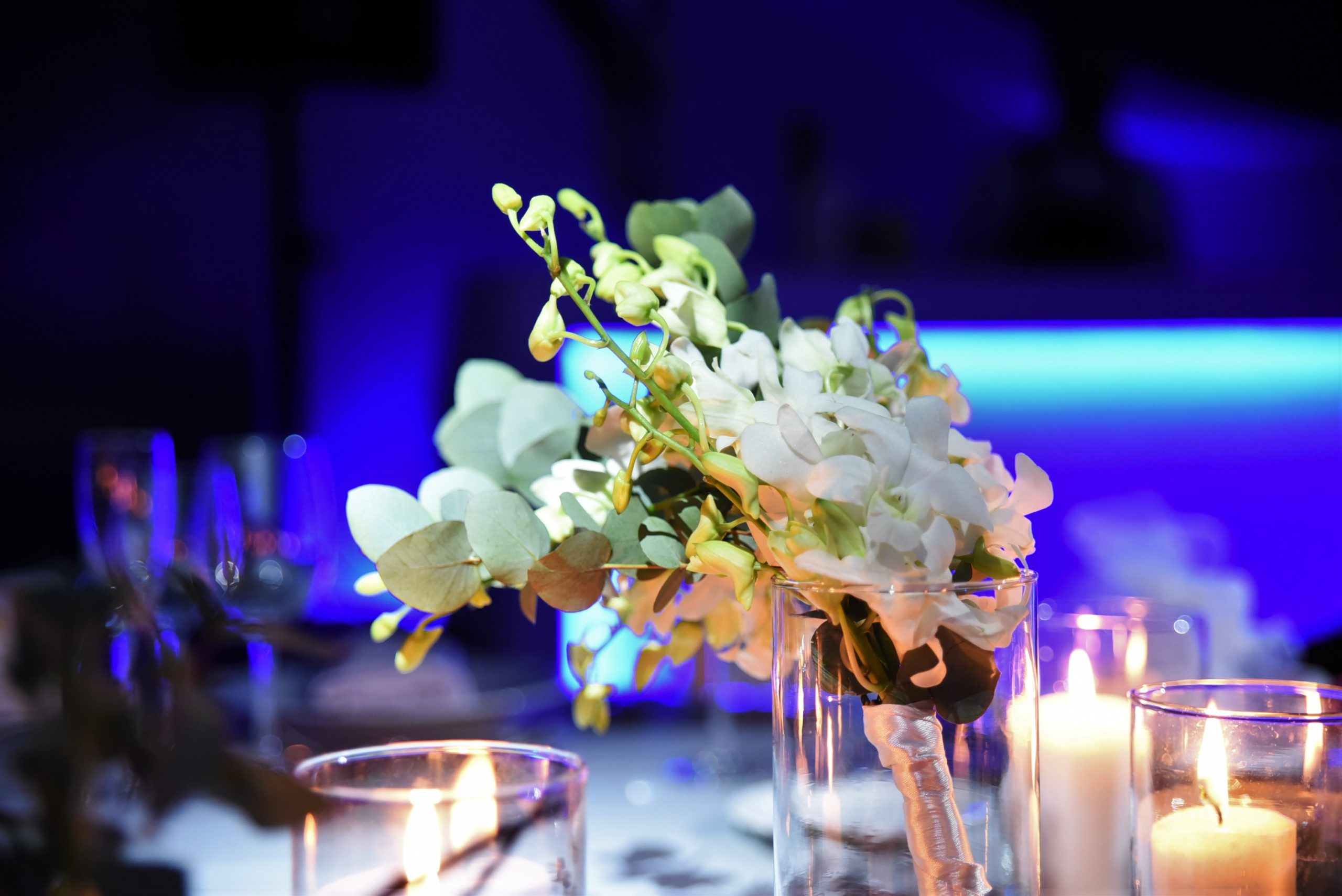 The reception was held at the Goulandris Museum, where the contemporary character of the space meets the elegance of event styling. The tables were decorated with high and low glass vases, candles and lighting details that created an evening garden atmosphere. The floral arrangements balanced perfectly with the lighting, giving depth and theatricality without exaggeration. The table with the wish book and the photobooth added two gathering points for the guests and friends of the couple. The party that followed was worthy of the emotion!