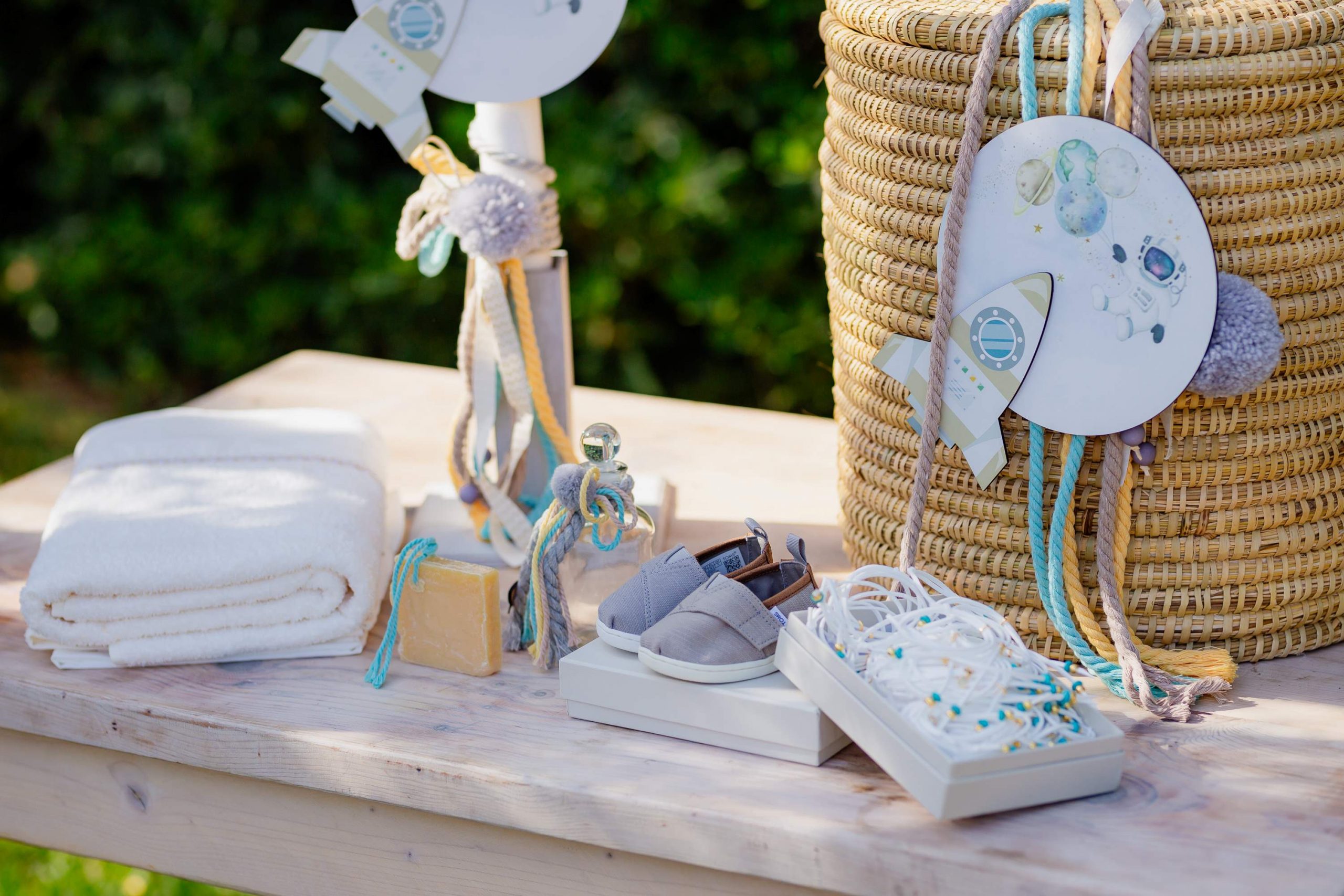 The wedding of Maria and Christos and the baptism of little Gerasimos at Ktima Nefeles was a special experience for us. We wanted to connect the two mysteries with harmony but most importantly to highlight the simplicity and elegance of the couple. The day began with an atmosphere full of light, emotion and details that spoke for themselves. The wedding and the baptism were united in a single concept, where the devotion of the mysteries met the joy of the family celebration.