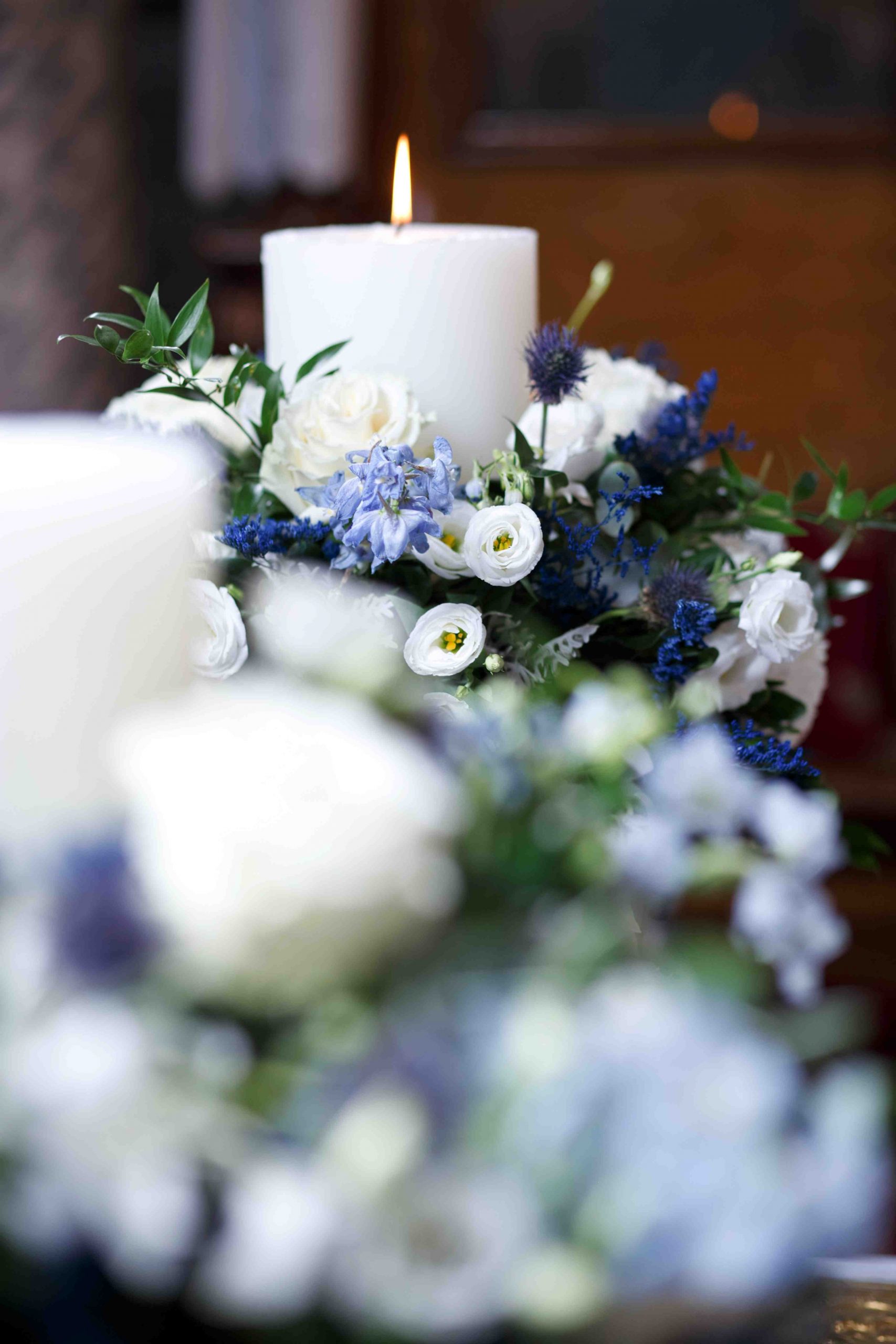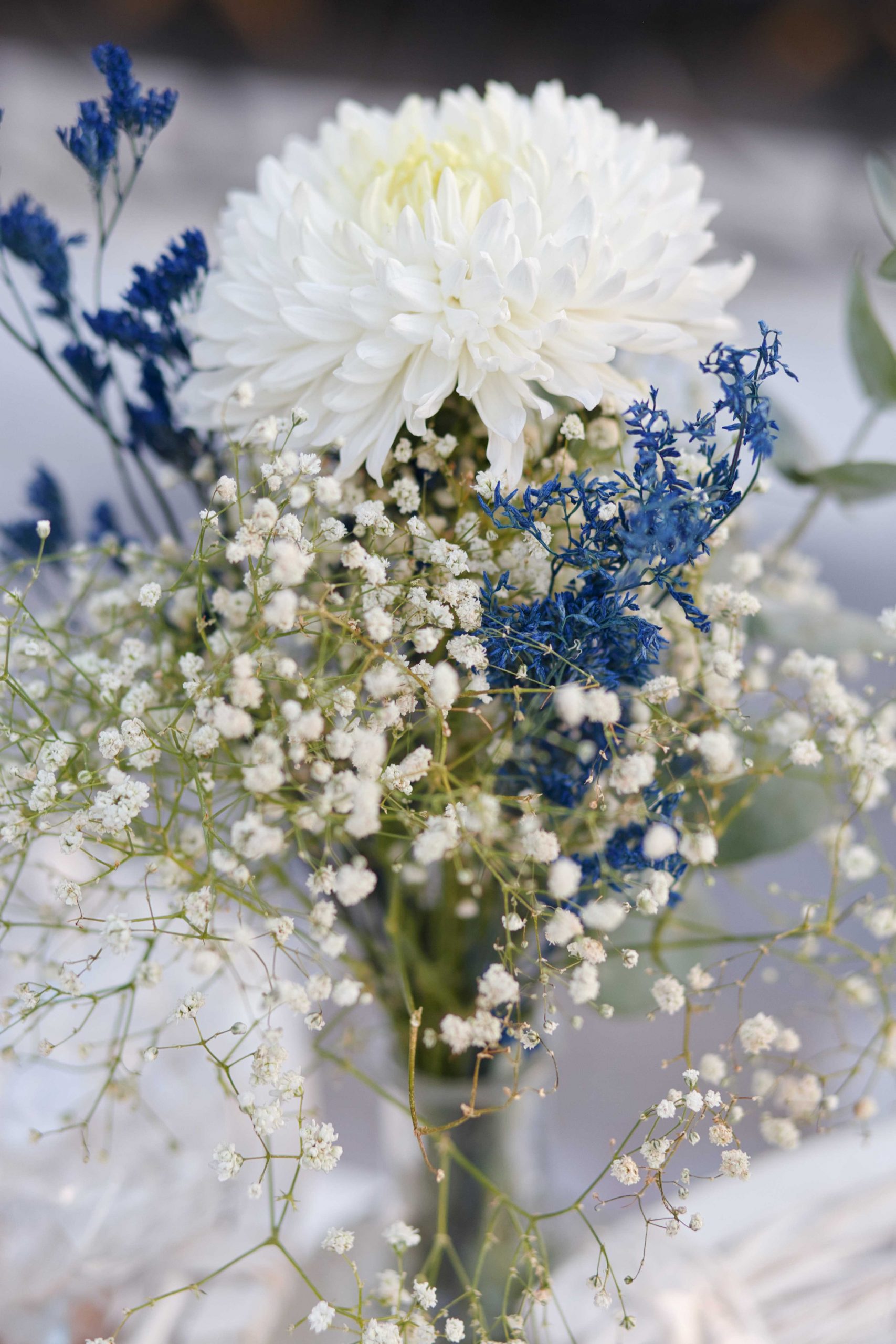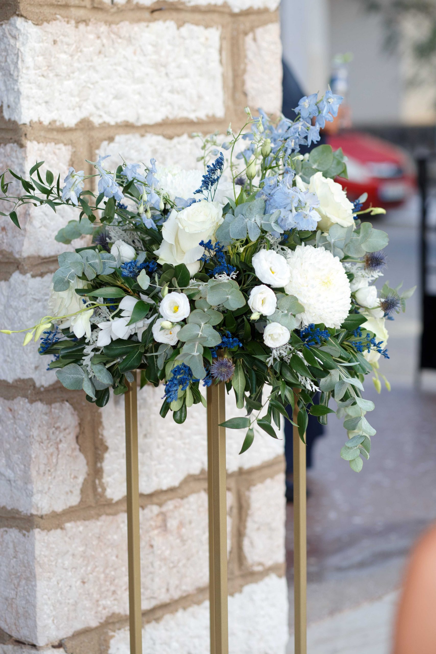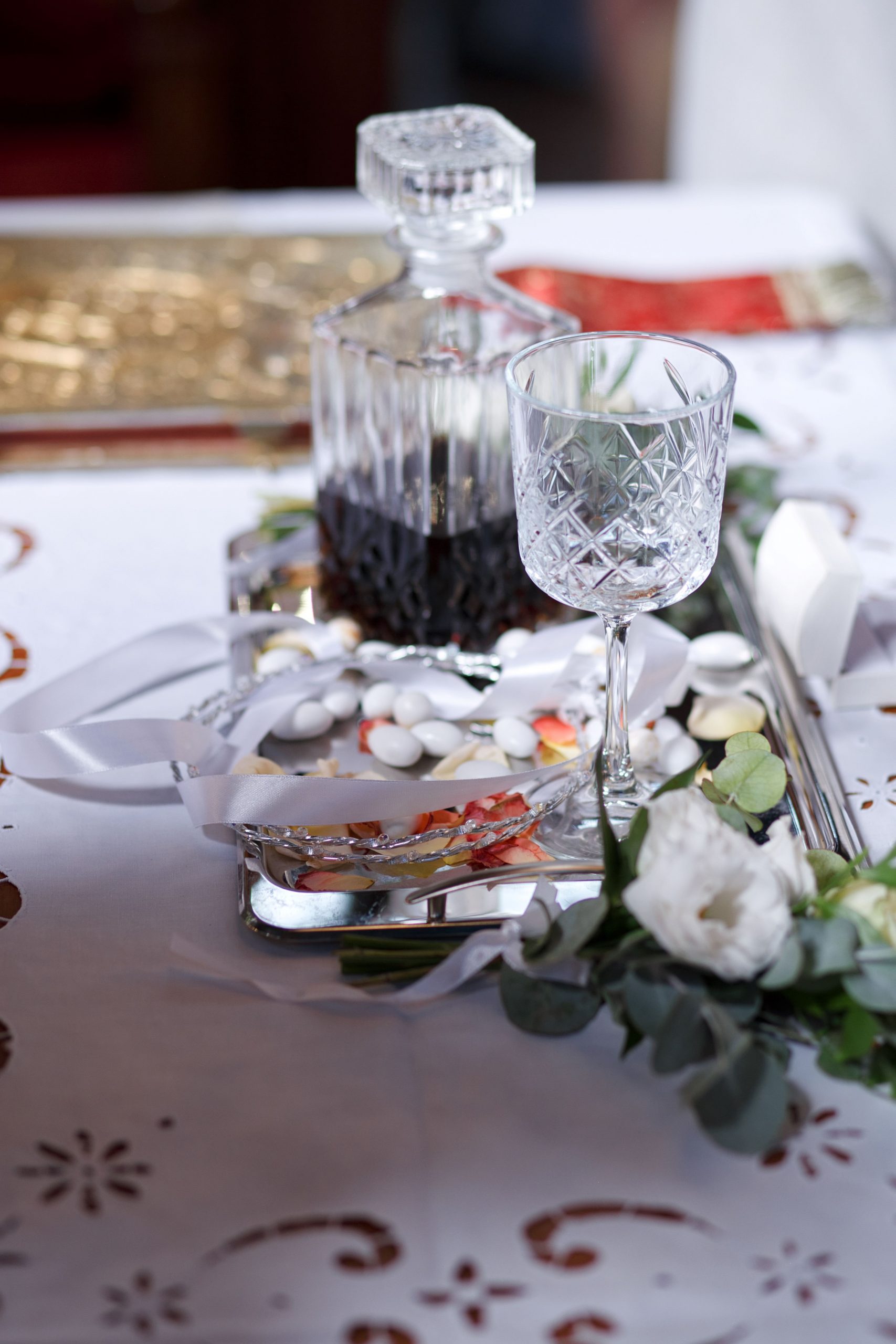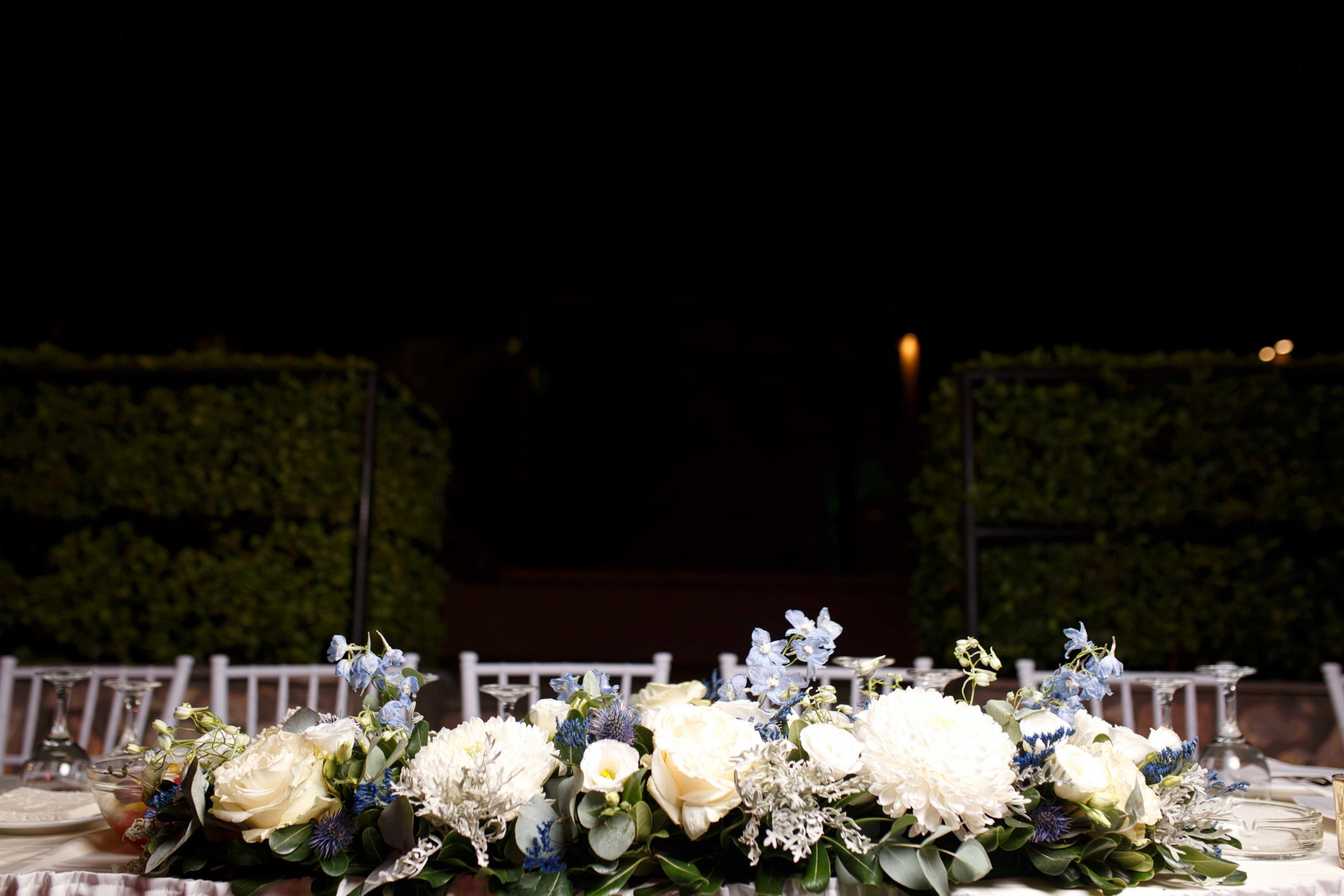 The decoration in the church moved in soft tones of white and blue, exuding elegance and tranquility. White flowers were harmoniously combined with eucalyptus and discreet blue details, creating a sense of freshness and purity. In the sacred space "kolympithra" and the ceremony areas were decorated with natural compositions that highlighted the warmth and importance of the moment. A romantic and bright decoration, full of love, that uniquely dressed the two mysteries!