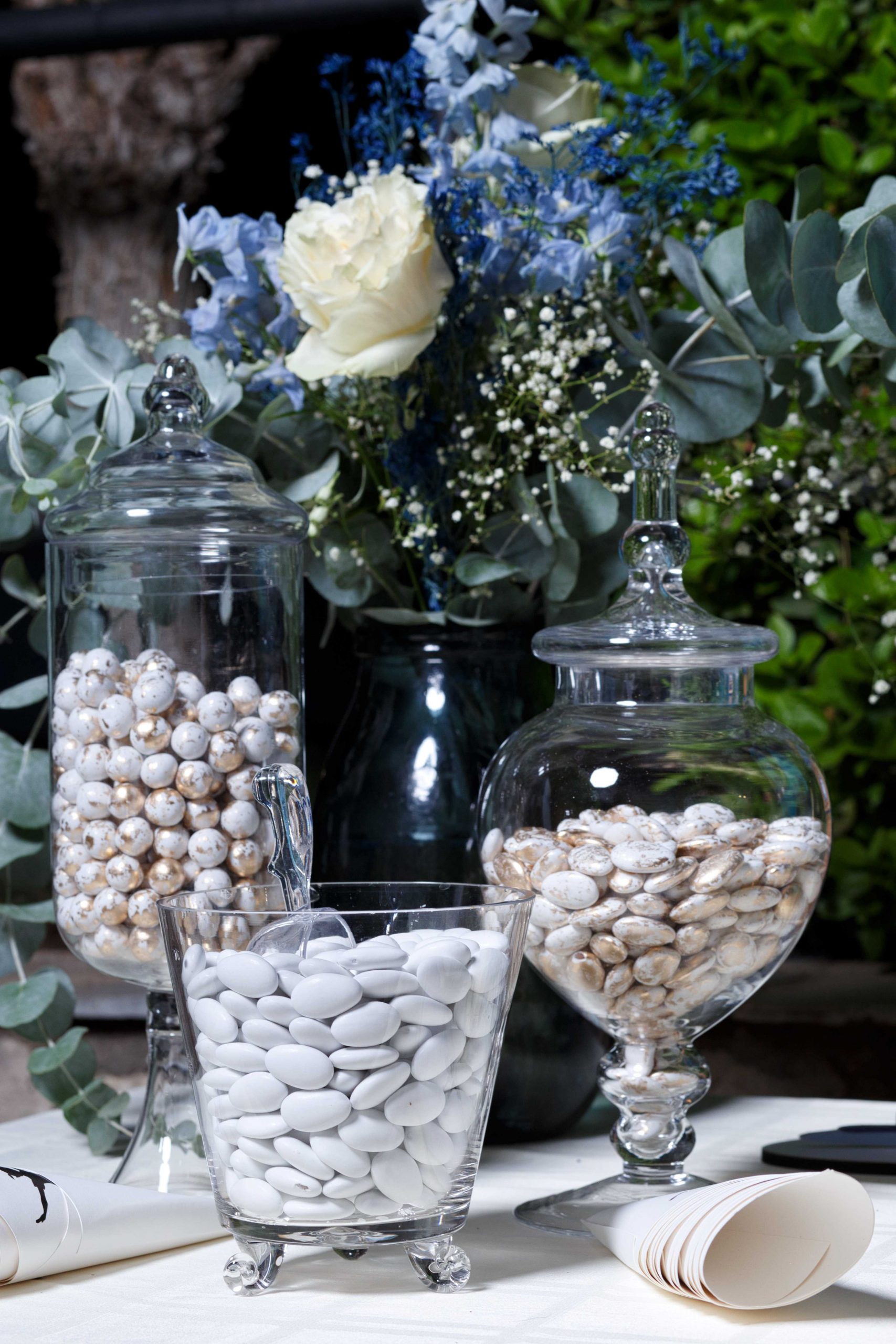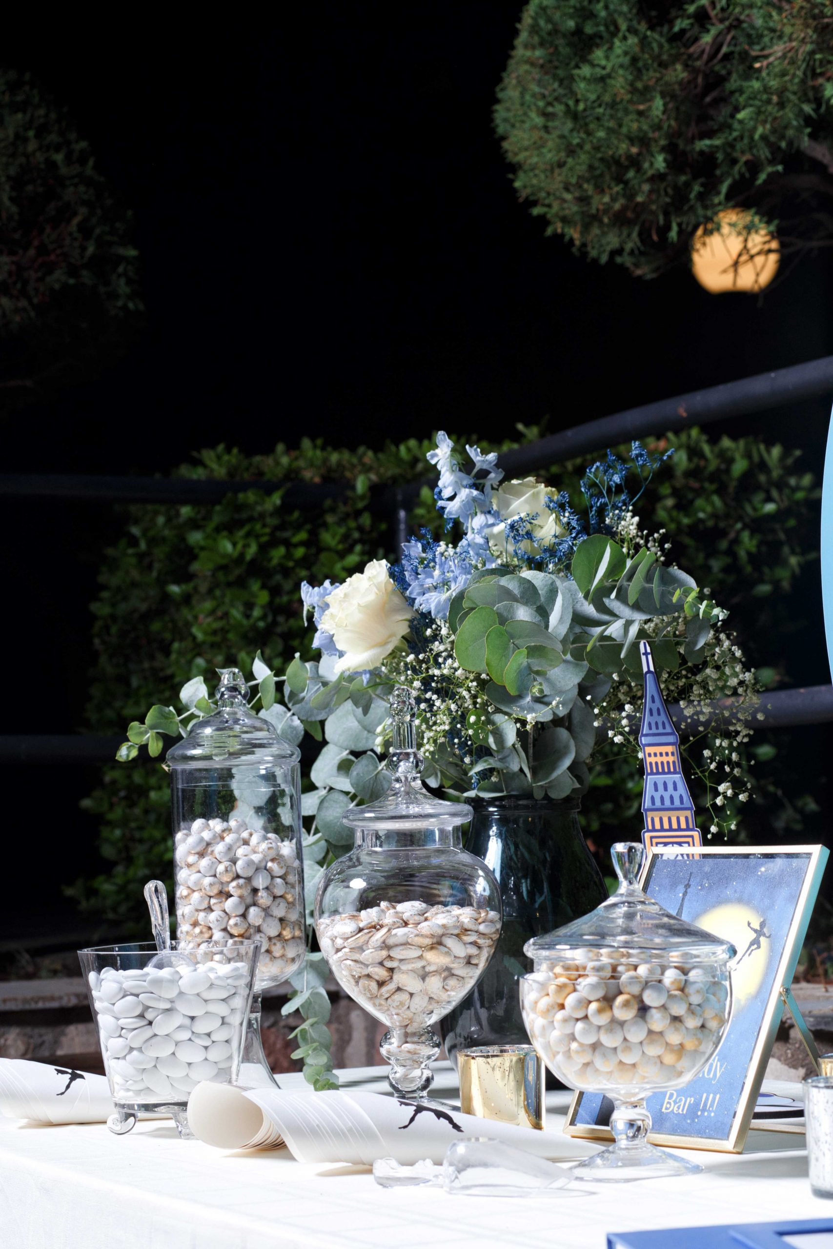 We started planning their wedding and the baptism of their little one relatively early. We wanted everything to be beautiful and matching for both mysteries. From the wonderful invitation and the favor box, to the Peter Pan-themed baptism candy bar, every detail was chosen with love and care.