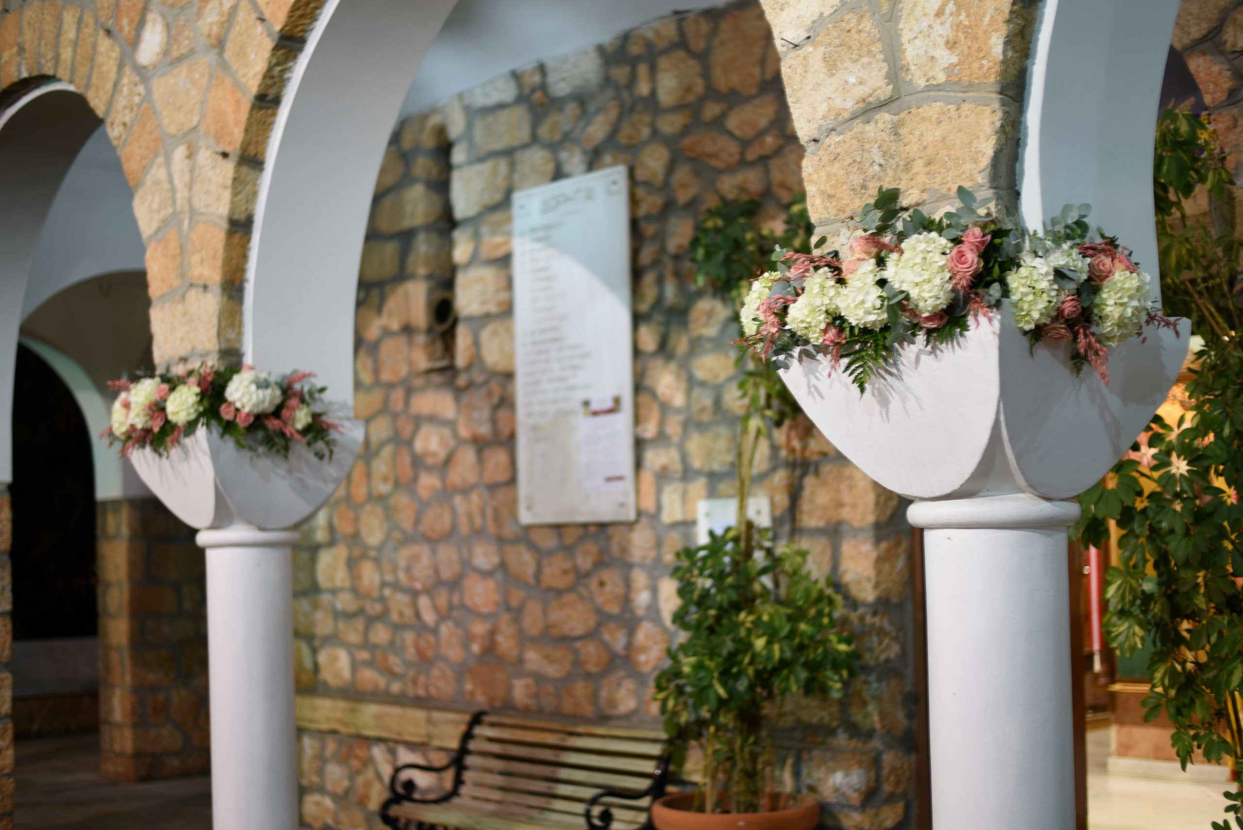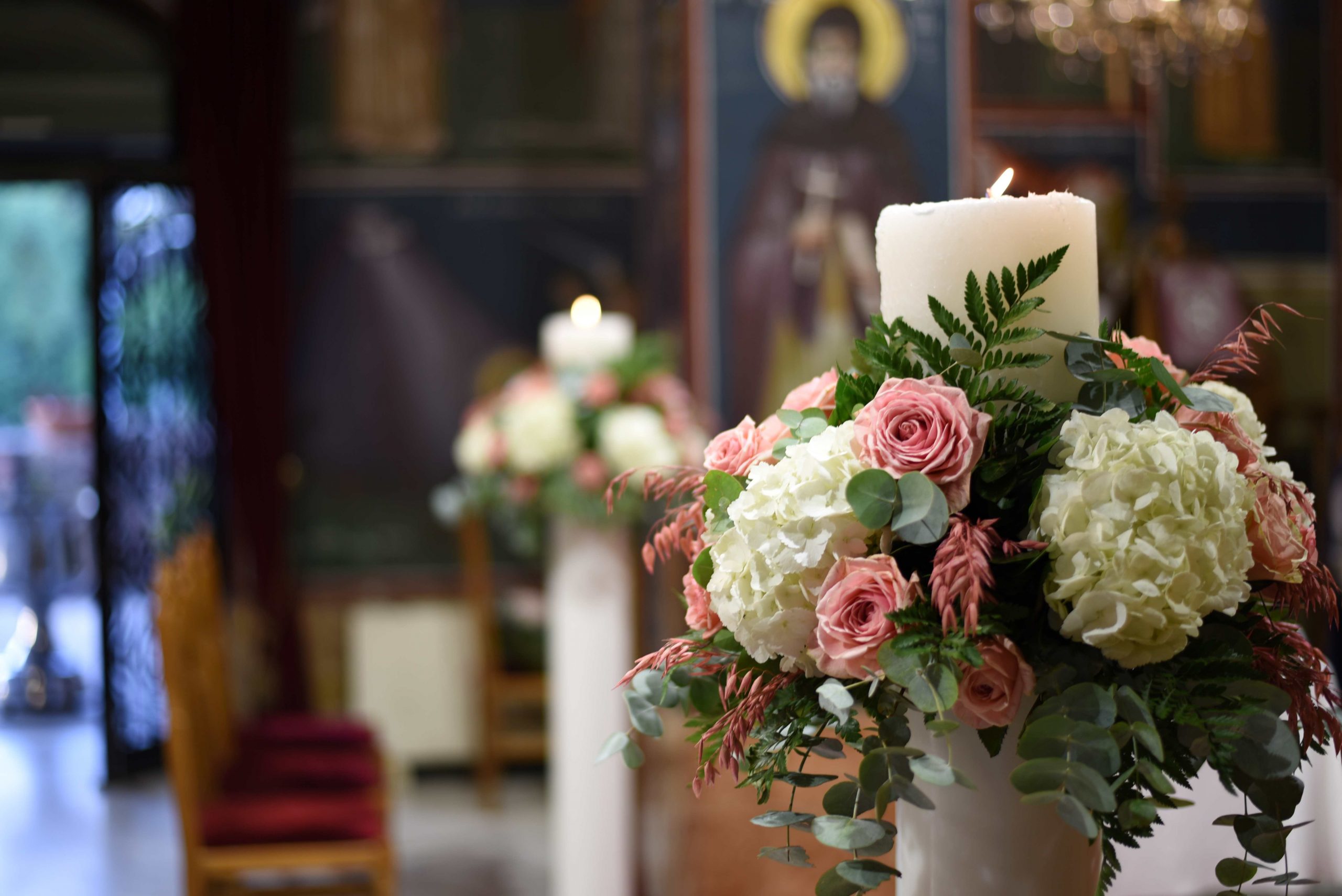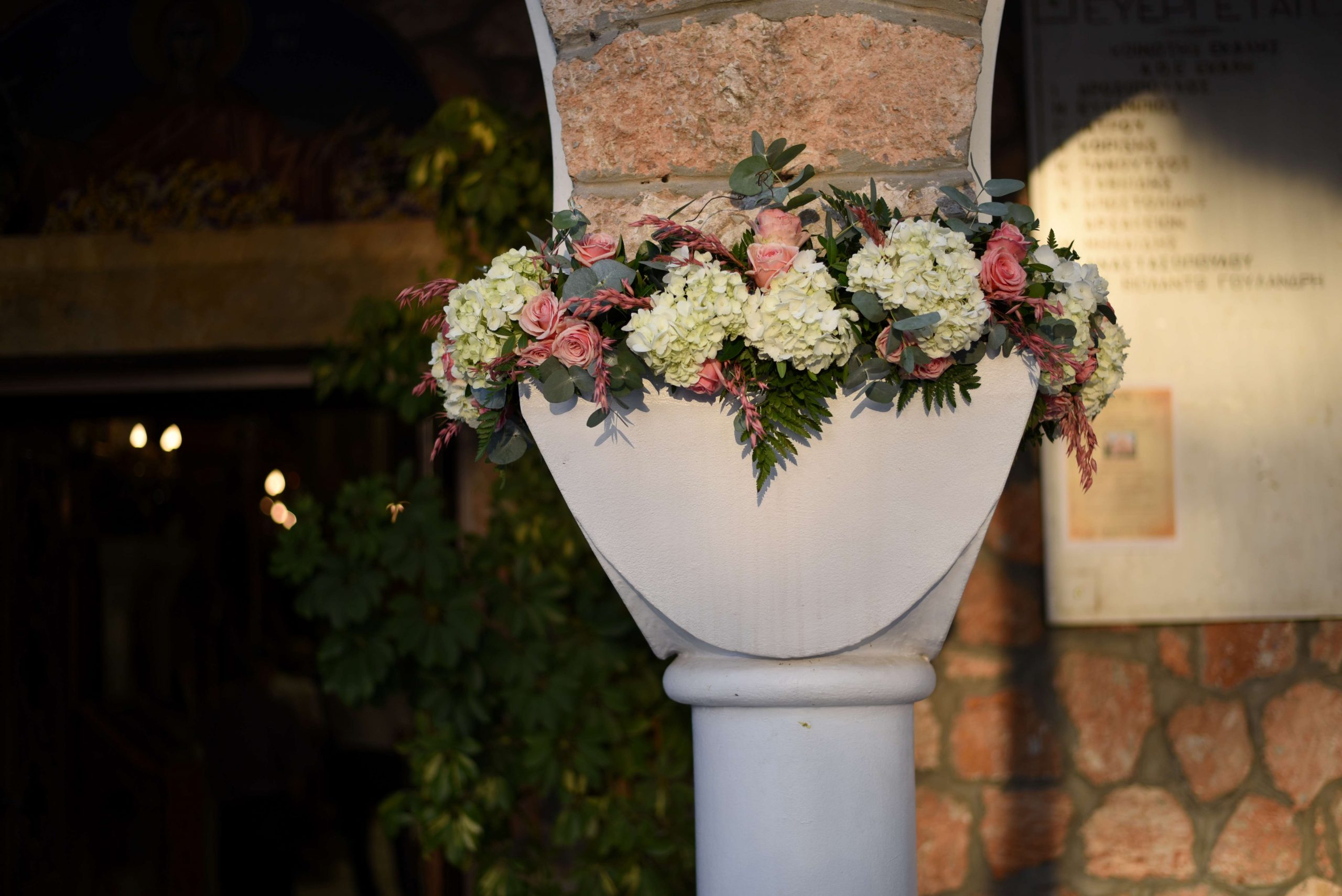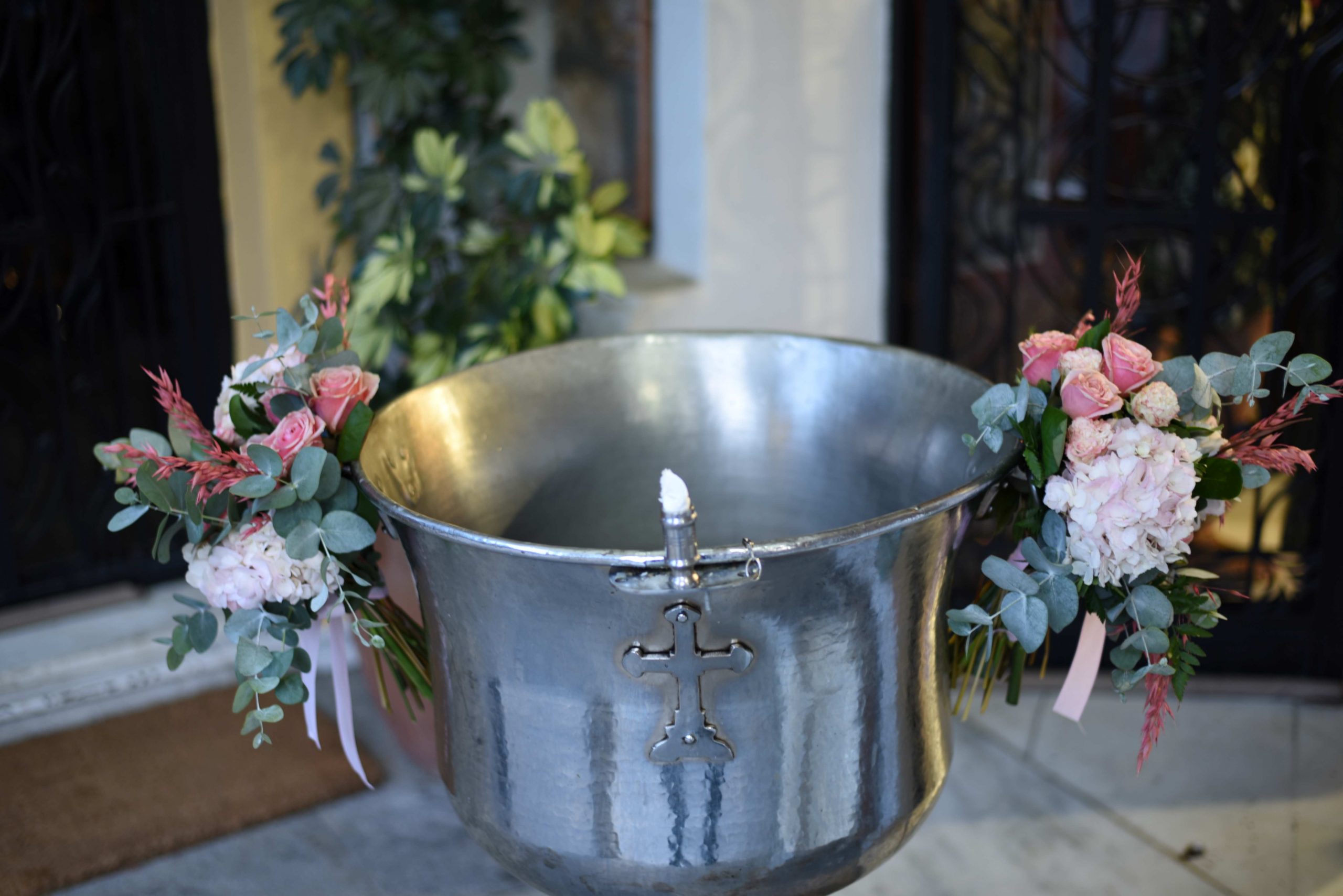 Maria and I barely knew each other before we collaborated on their wedding and the baptism of their little one. This collaboration, in addition to the wonderful result, also created a friendship! The sacraments took place in the elegant and bright church of Agia Marina of Ekali, where the wedding and the baptism were united in a single concept of softness and romantic balance. The decoration moved in shades of blush pink, ivory and natural green, creating a tender, timeless setting and perfectly in harmony with the sacredness of the space.