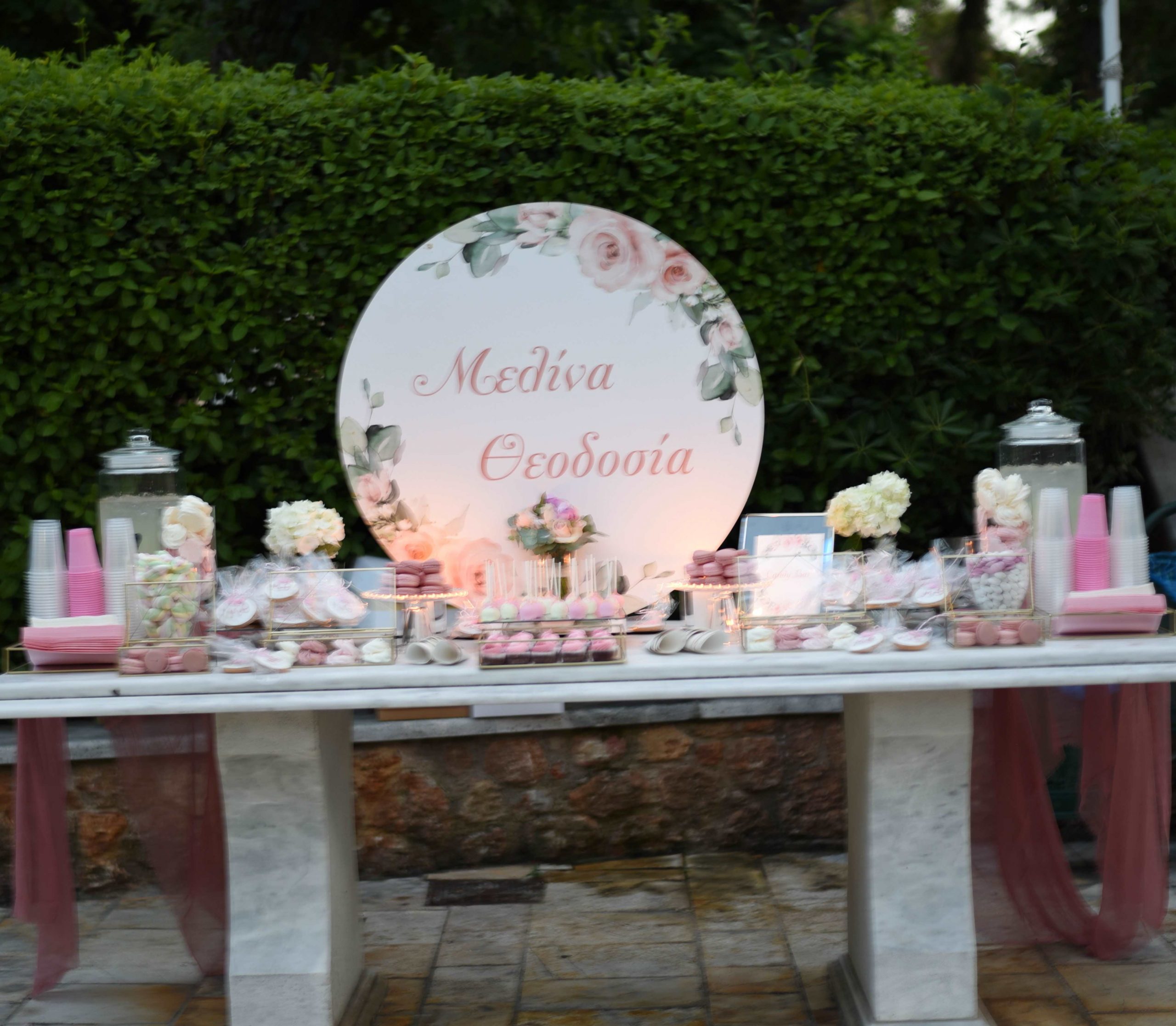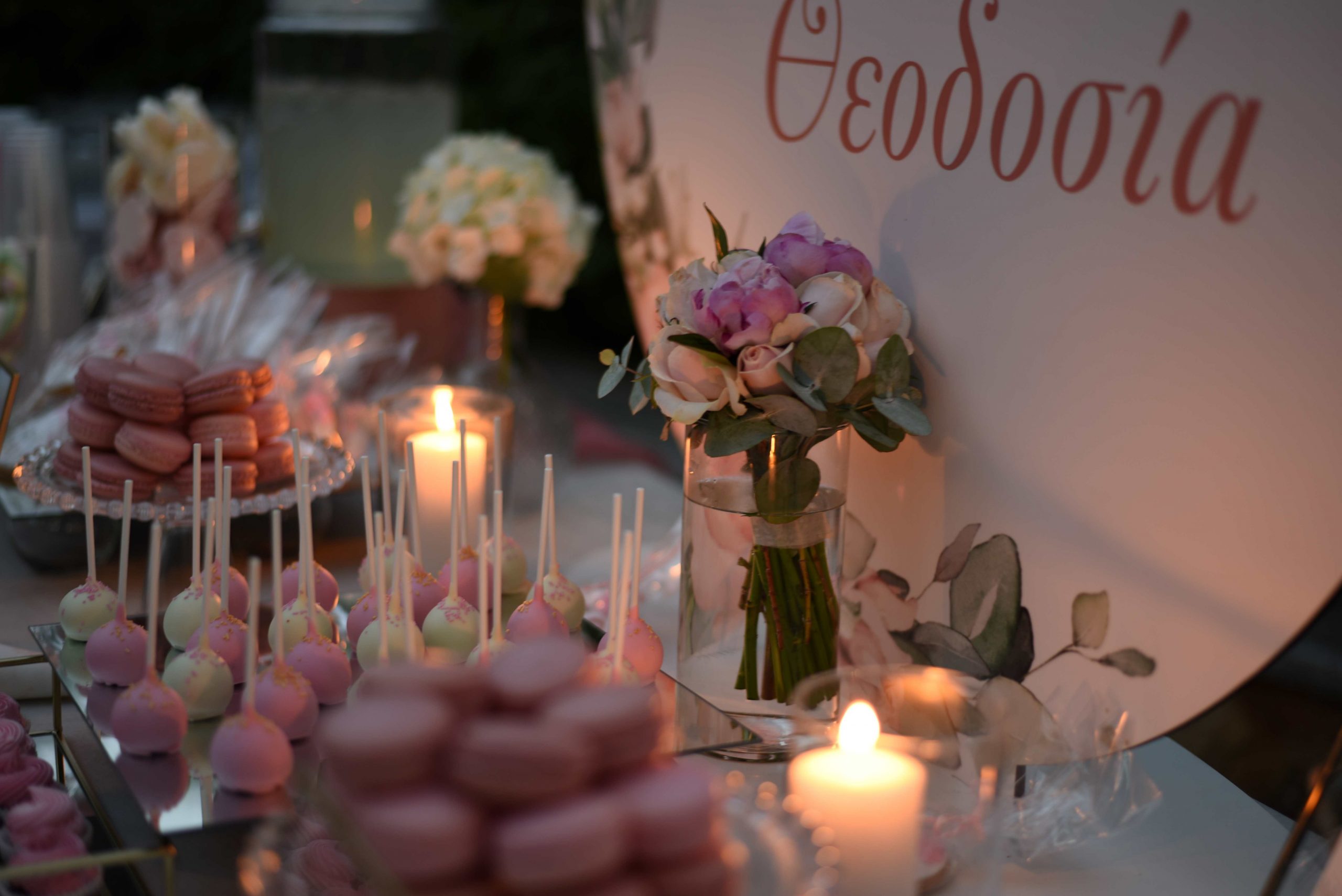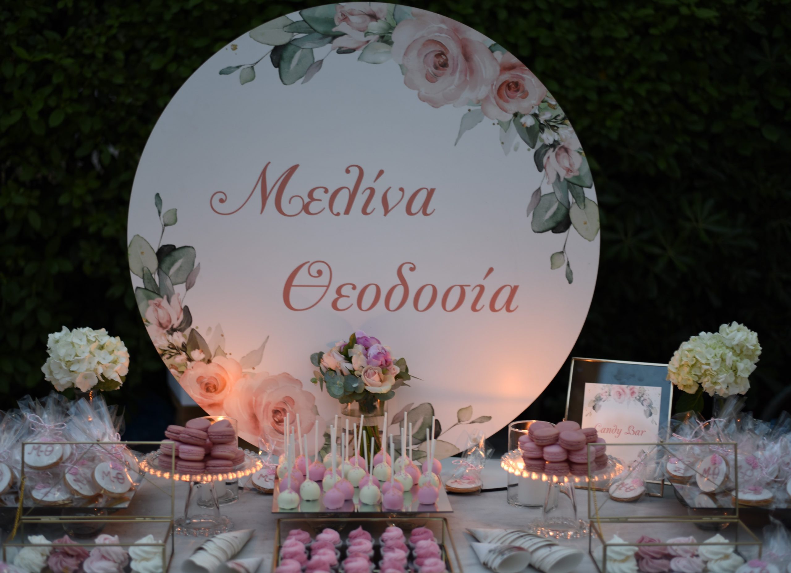 The candy bar “from Heaven” was a point of joy and color. Macarons, cake pops and sweet details in blush and mint shades were framed by flowers and softly lit elements, creating a romantic, almost dreamy image. A setting that balanced between the elegance of the wedding and the sweetness of the baptism.
