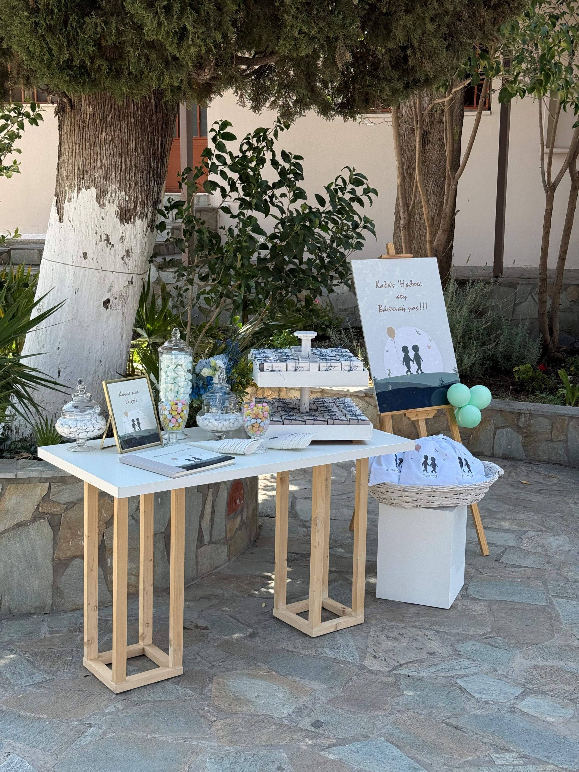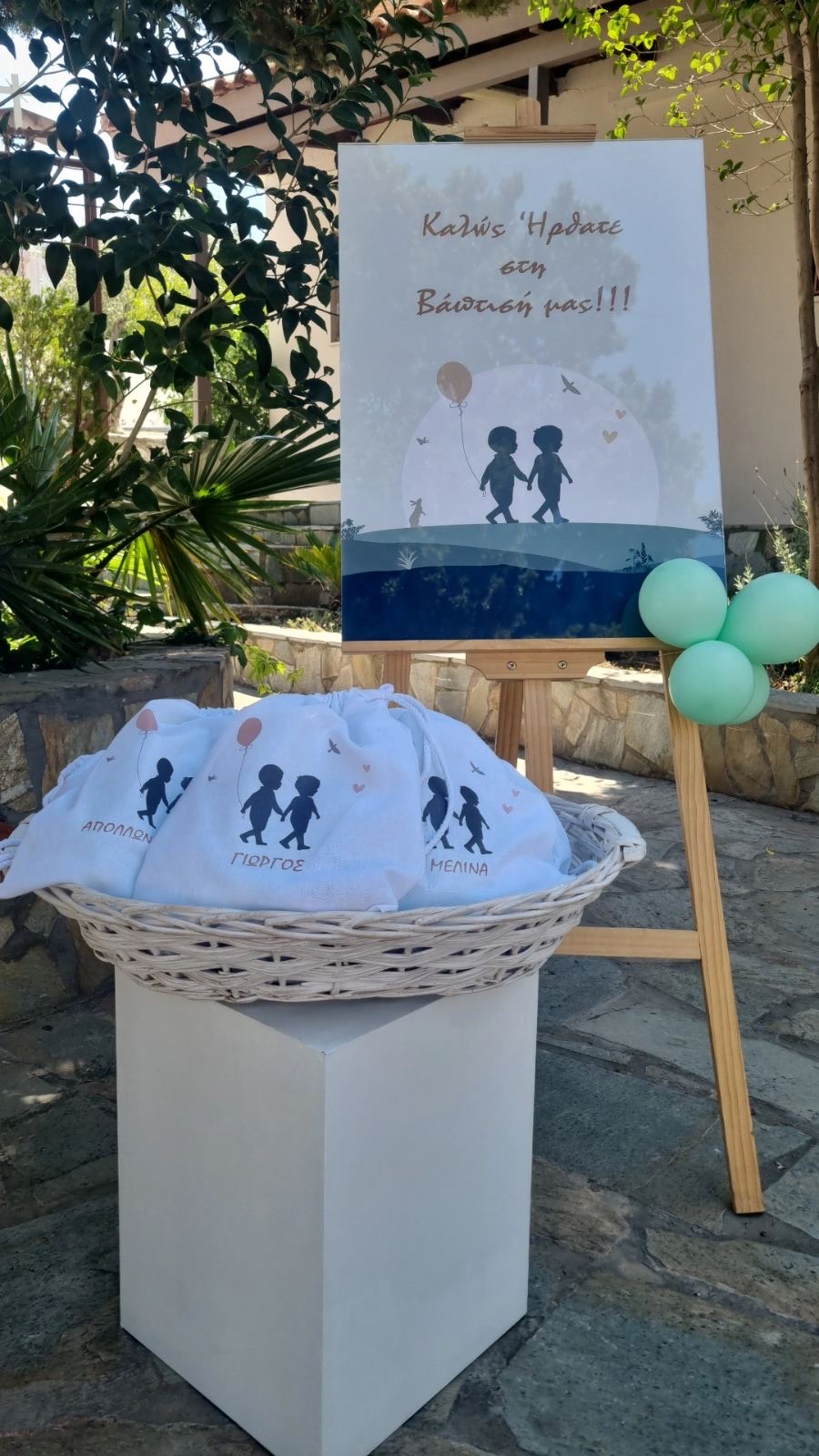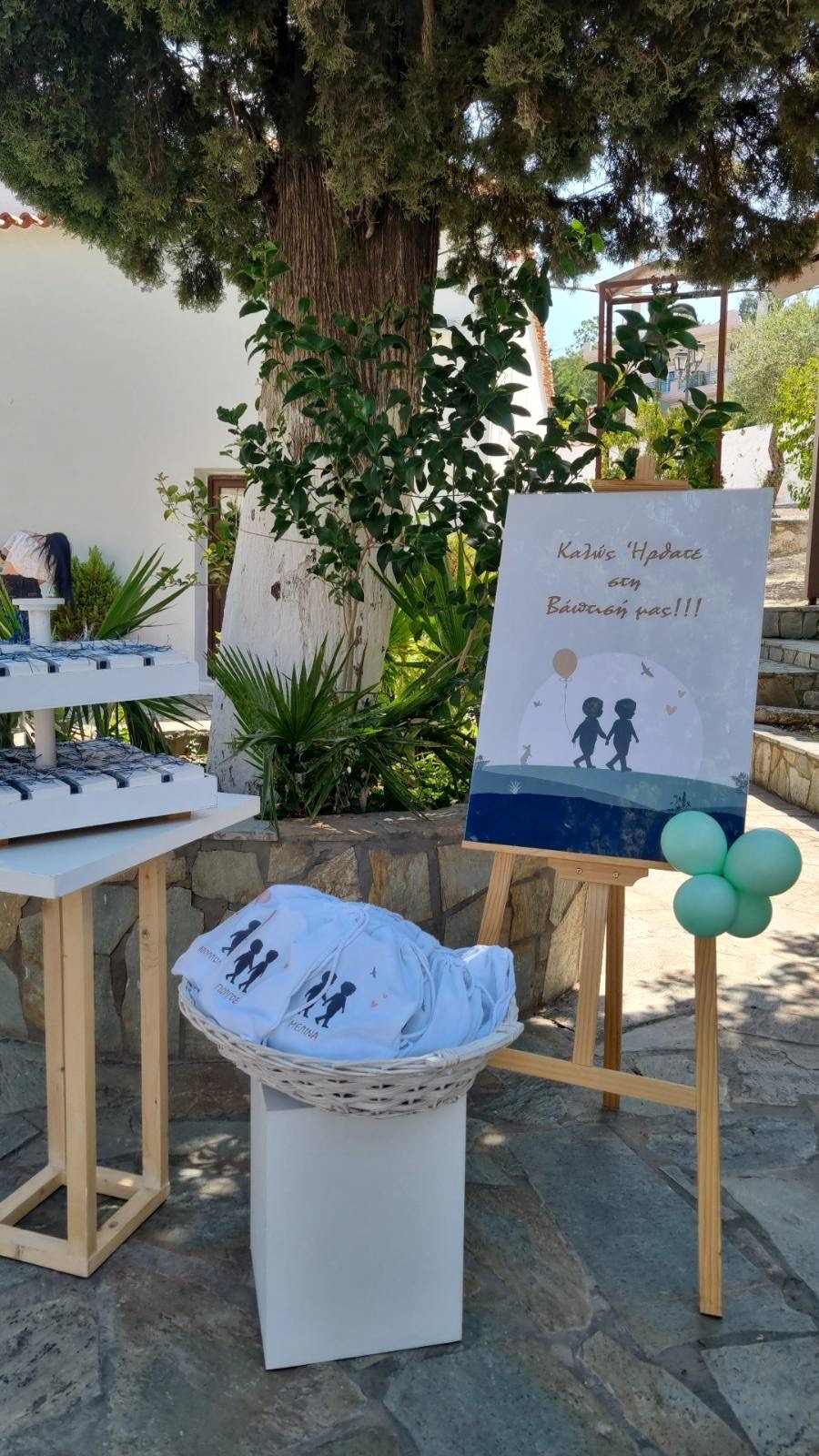 Ένα ολοκληρωμένο concept για βάπτιση διδύμων αγοριών, όπου η φινέτσα συναντά τη φυσικότητα και κάθε λεπτομέρεια σχεδιάστηκε με αγάπη και ισορροπία.