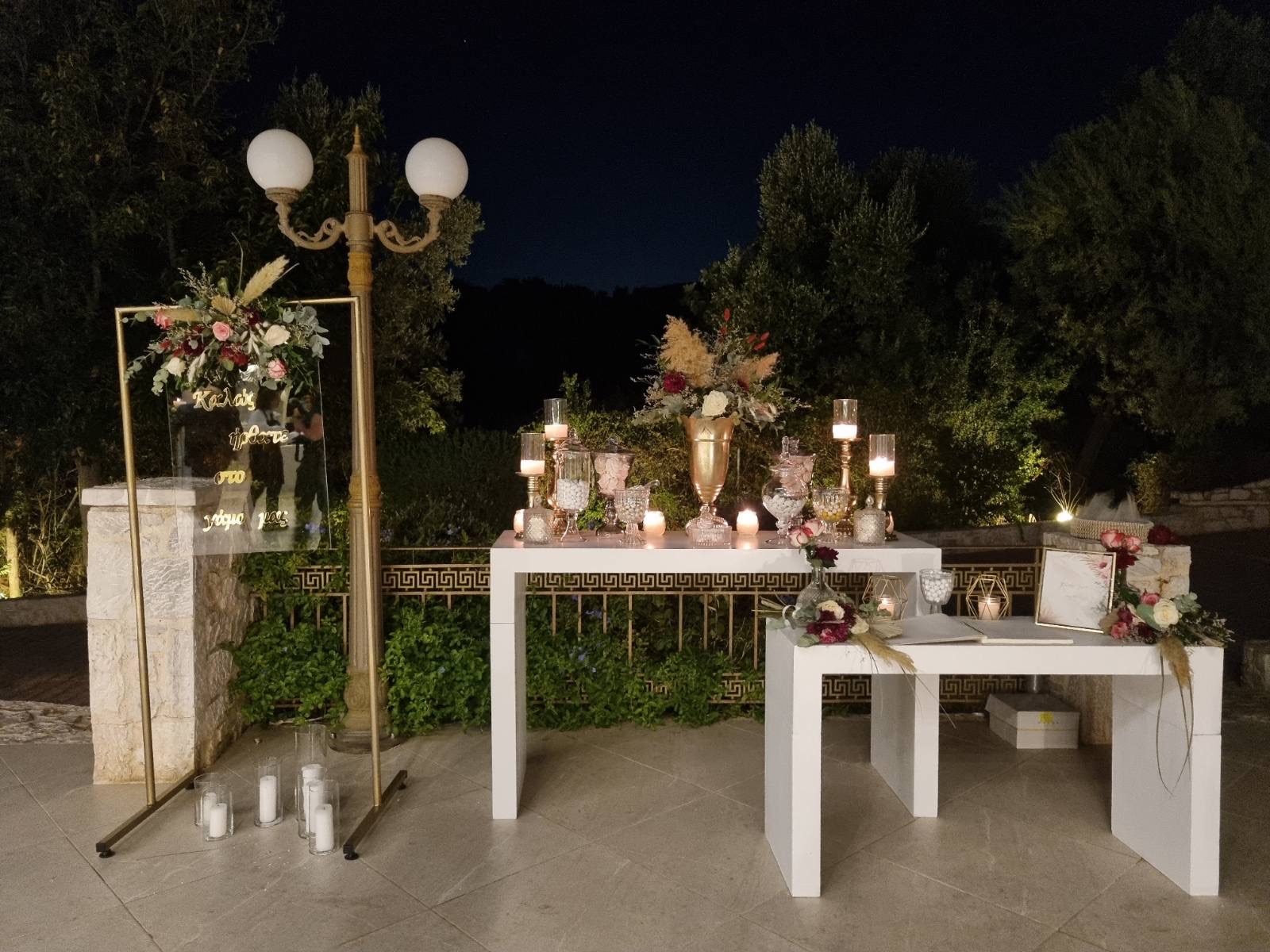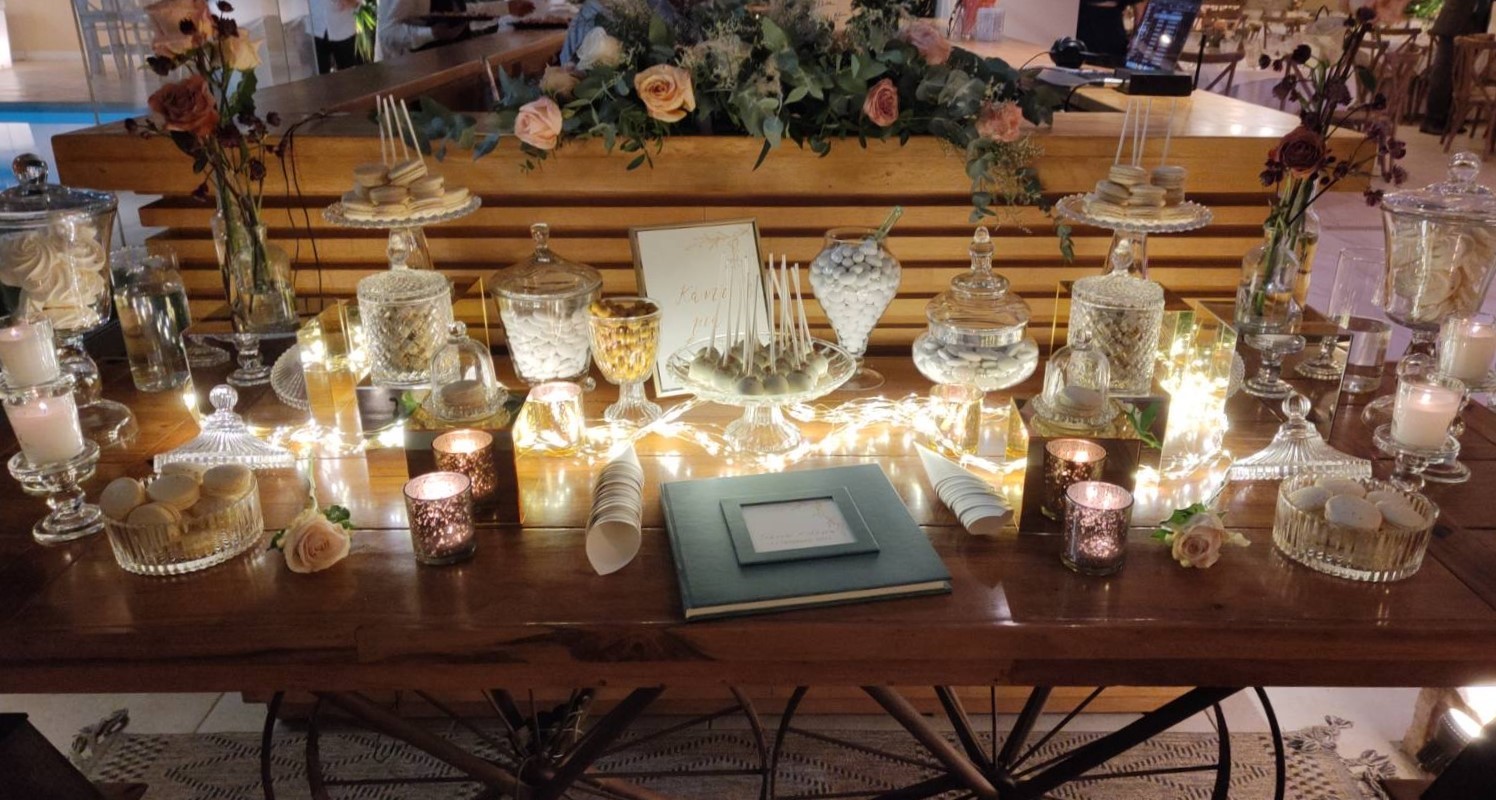 The dessert table is not just a beautiful detail — it is a sweet experience that has become a favorite spot at every reception!!! It adds character, color and atmosphere, enhancing the overall decoration and aesthetics of your wedding. Its design is inspired and perfectly harmonized with the style and concept of the event, aiming to impress visually and offer a delightful, tasteful touch to your guests.